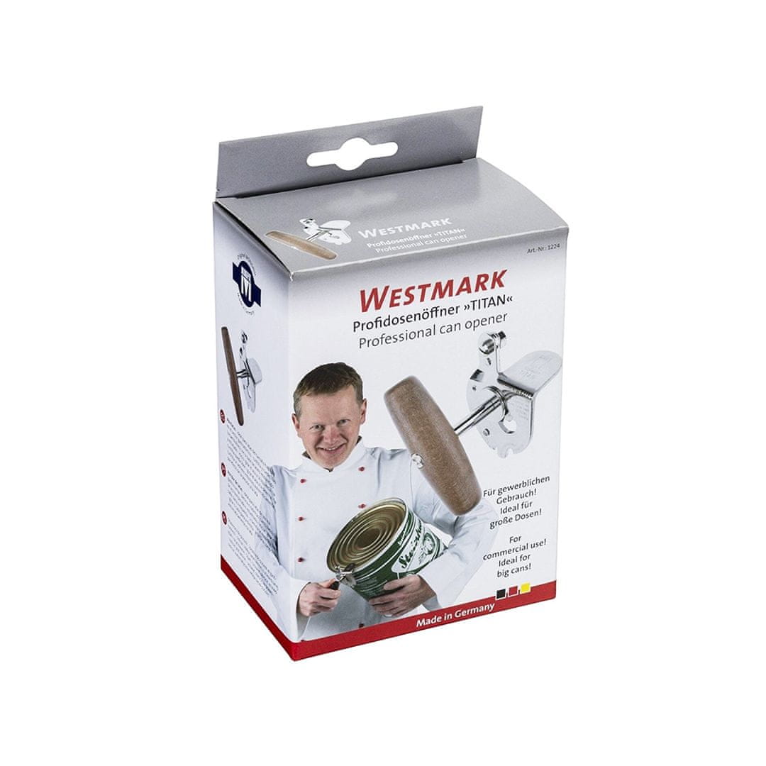 Westmarkov kompakten in močan odpirač za konzerve Monopol Titan se ponaša z rezilom iz nerjavečega in zmogljivim kolesom, ki omogoča, da brez truda odprete tudi velike gostinske konzerve. Celoten opis