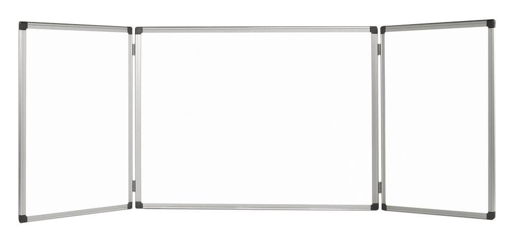 Zložljiva bela tabla s trikrat povečano uporabno površino. Za pisanje z markerji za belo tablo in za pritrjevanje magnetov. Premični tabli omogočata pisanje na obeh straneh. Primerna za prikrivanje prej napisane ali zaupne vsebine. Idealna za izobraževanja in predstavitve. Odložna polica za. Celoten opis
