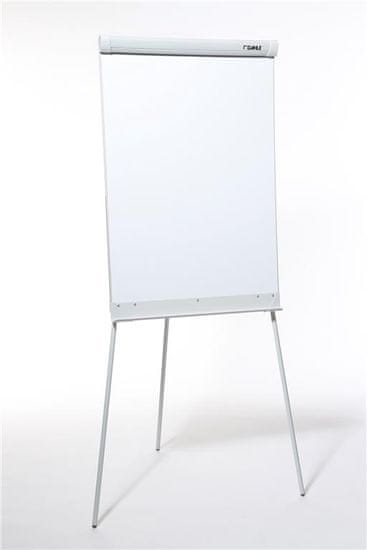 Nov dizajn table!. Belo prevlečena magnetna površina table v aluminijastem okvirju. Za pisanje z markerji za belo tablo. Nosilci za pisalni blok, nastavljivi za vse običajne velikosti. Tri podporne noge z vijaki za dobro stabilnost. Odložna polica za pisala. Nastavljiva višina do 187 cm. Celoten opis