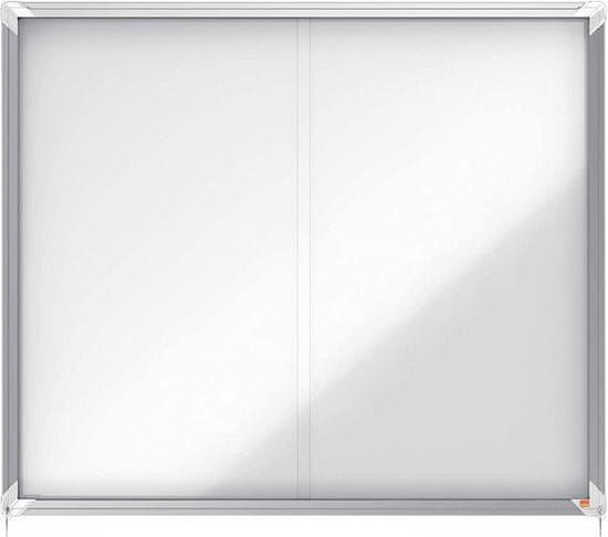 NOBO oglasna tabla 15×A4 z drsnimi vrati in ključem – magnetna.