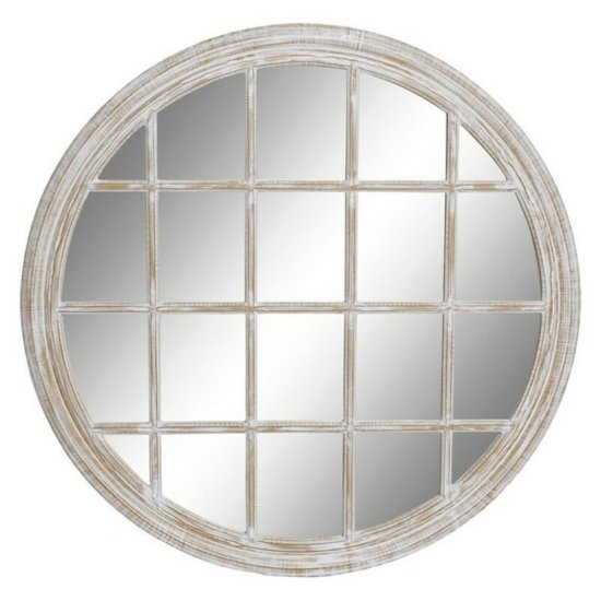 BigBuy Stensko ogledalo DKD Home Decor Crystal White Iron MDF Wood Stripped (90 x 2 x 90 cm)