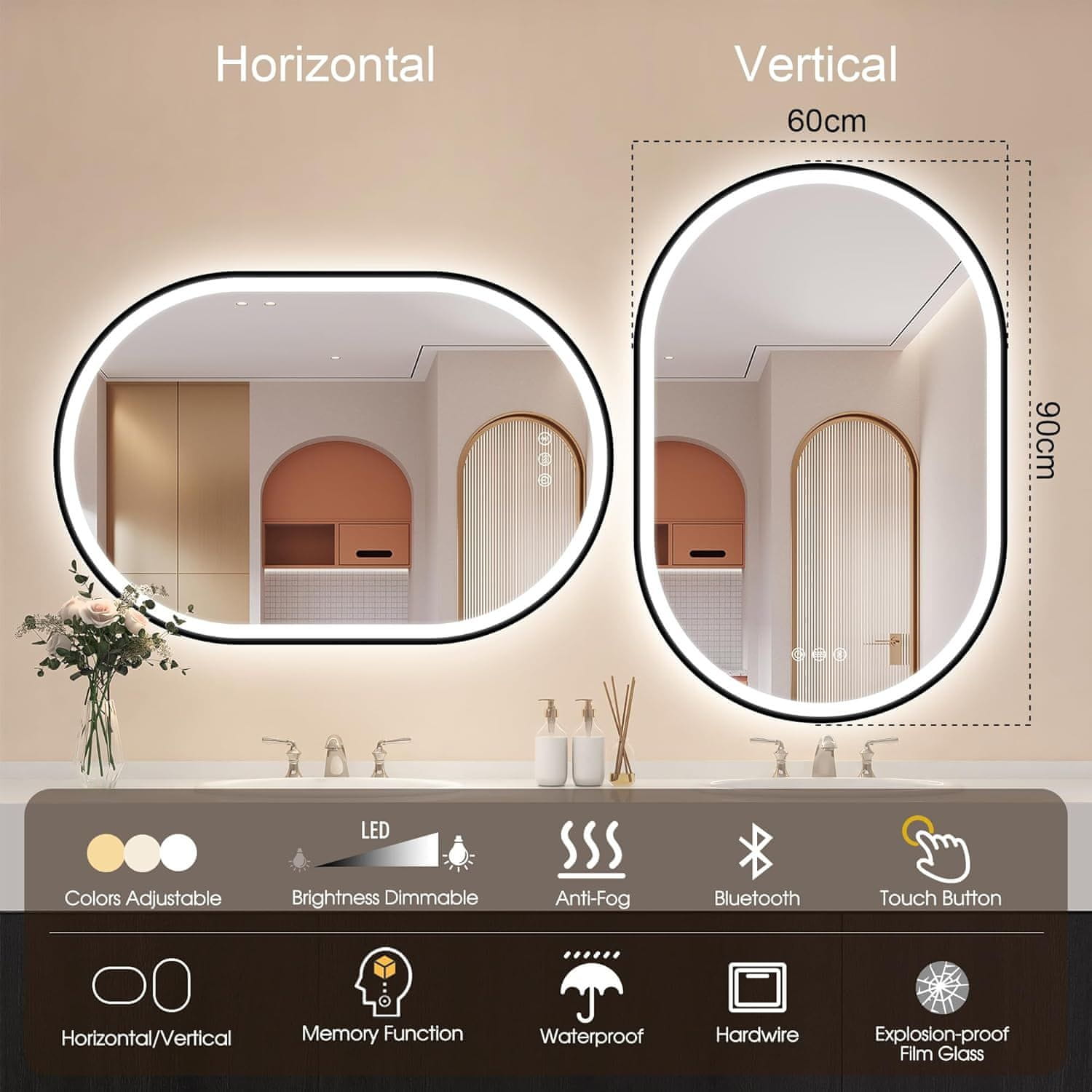 Izboljšajte standard svoje kopalnice z luksuznim ogledalom znamke STARLEAD, ki združuje sodoben dizajn z napredno tehnologijo udobja. To elegantno ovalno ogledalo dimenzij 90 × 60 cm je zasnovano za uporabnike, ki cenijo funkcionalnost in slog brez kompromisov pri vsakodnevni negi. Izdelano je iz kakovostnega HD kaljenega stekla, ki zagotavlja kristalno čist odsev, medtem ko črn okvir doda prostoru prefinjen in sodoben značaj. Naprava je idealna za vgradnjo v kopalniške prostore, kjer sta pomembna tako estetika kot visoka odpornost na specifične pogoje vlage.
