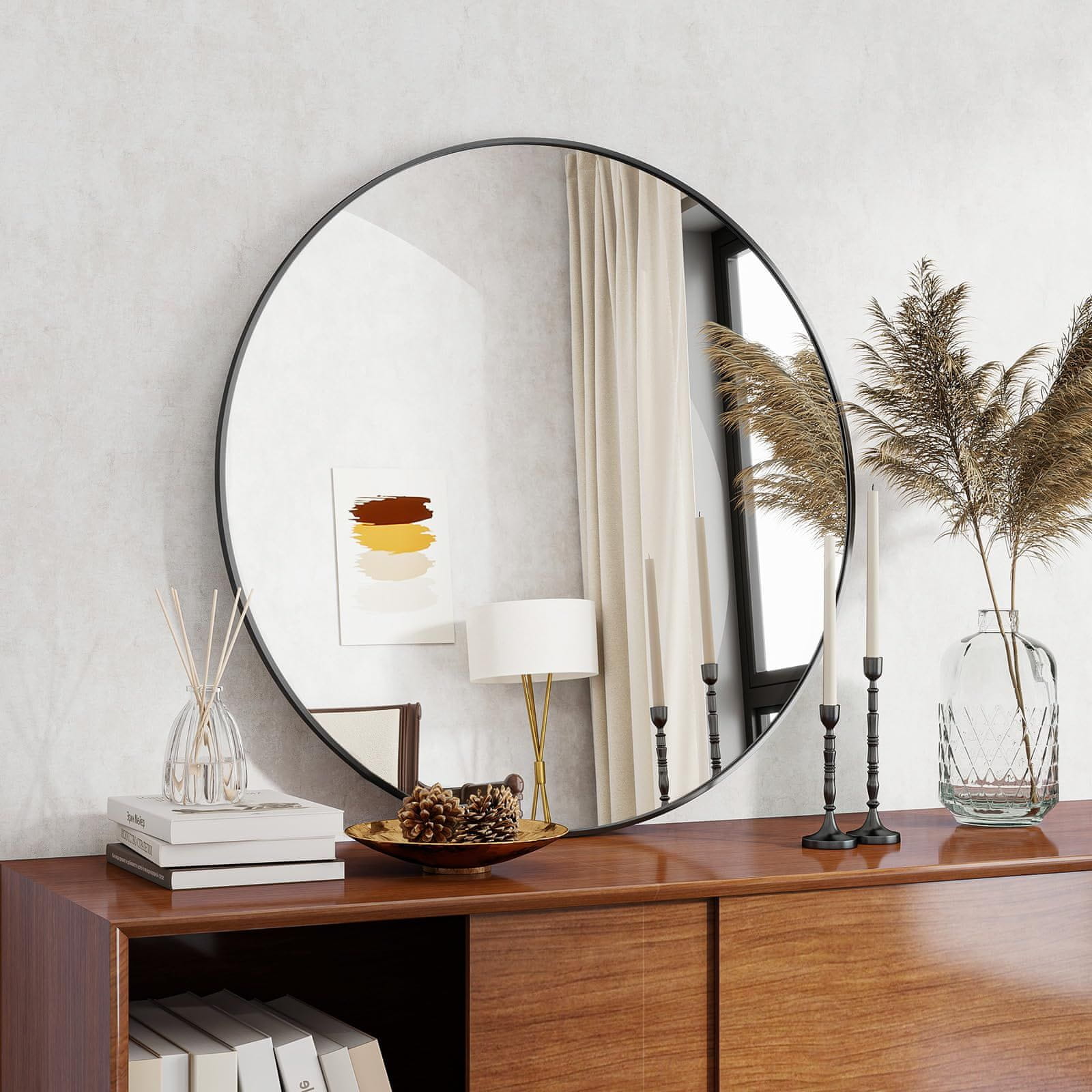 Nikcorp Okroglo stensko ogledalo 60 cm s črnim aluminijastim okvirjem | Moderno ogledalo za kopalnico, dnevno sobo, predsobo