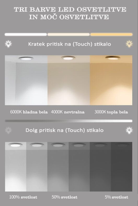 LED svetloba: hladno bela, nevtralna, toplo bela