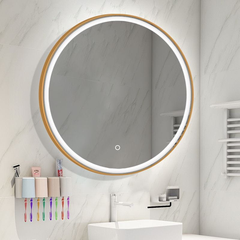 S6 Steklarstvo Šest Okroglo LED ogledalo S614A , fi 70cm, z zlatim okvirjem, LED kopalniško ogledalo, 3barve LED, antifog