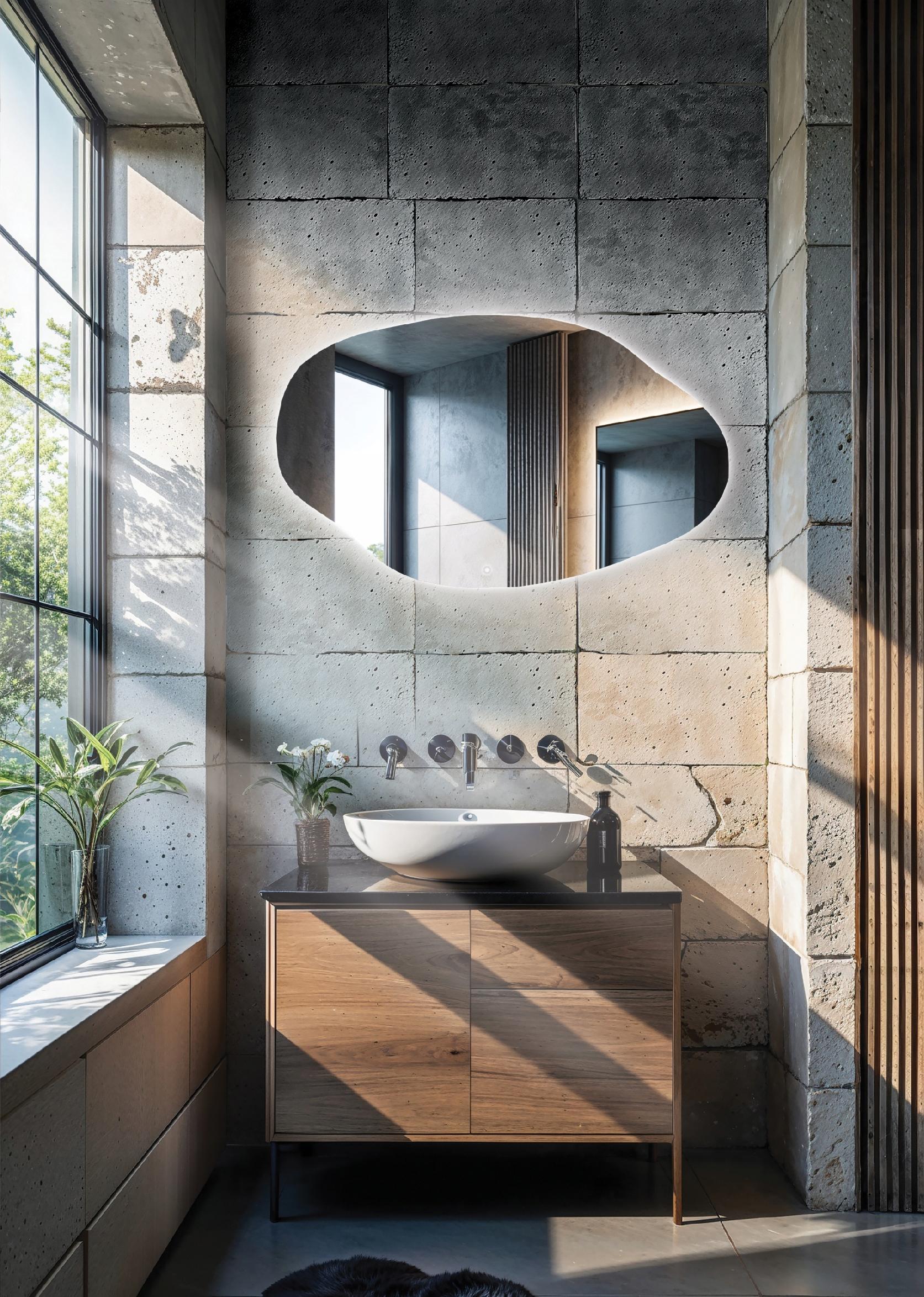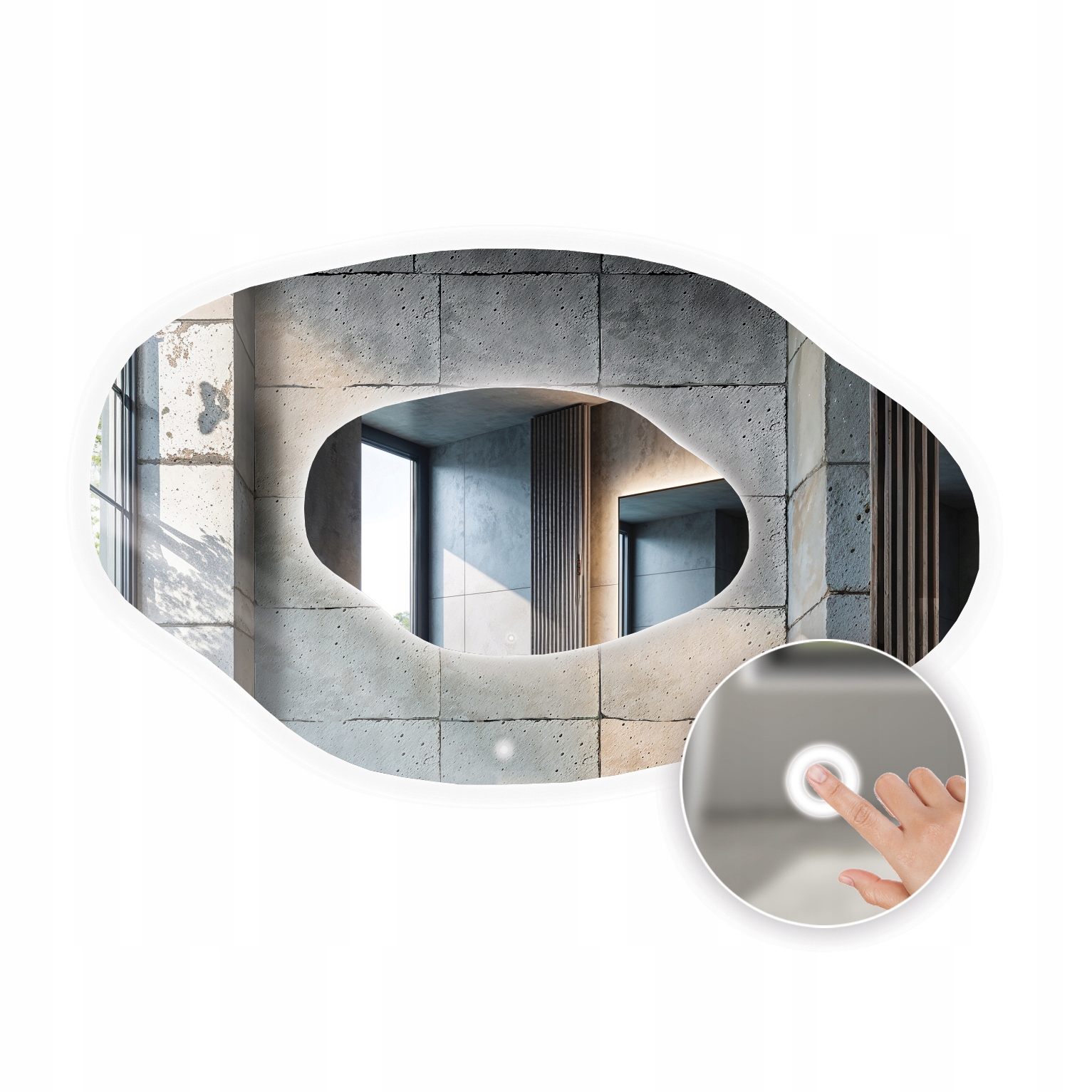 LED ogledalo 90×65 cm nepravilne ovalne oblike z dotikalnim stikalom ARVEN