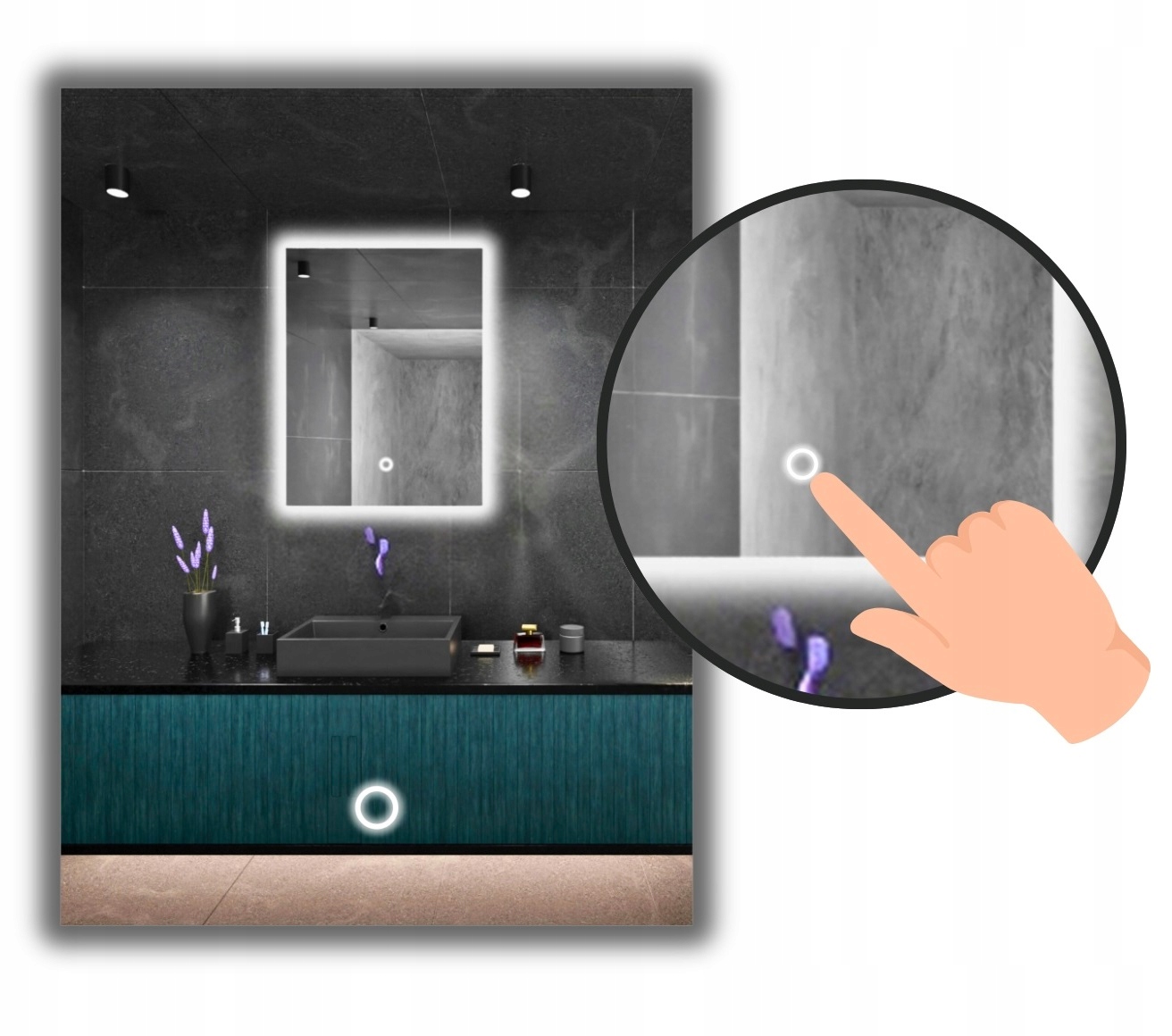 LED osvetljeno ogledalo 95×100 IP65 vodoodporno s stikalom na dotik