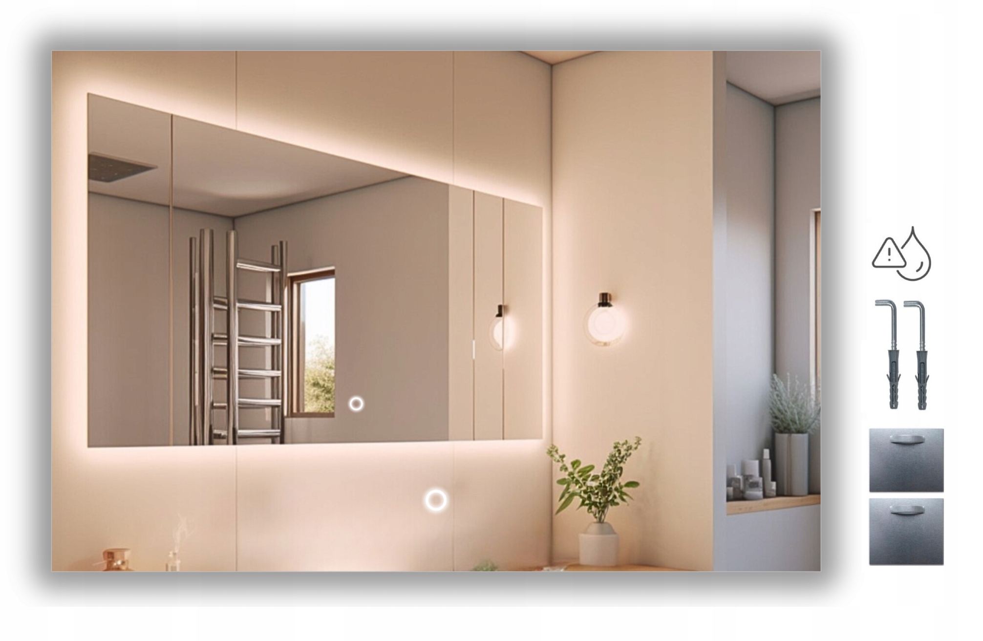 Če želite personalizirati ogledalo, nam po nakupu v sporočilu navedite želeno barvo LED osvetlitve. Če teh informacij ne prejmemo od vas, bomo privzeto izbrali nevtralno barvo svetlobe 4000K, ki se bo harmonično zlila z vsako notranjostjo.