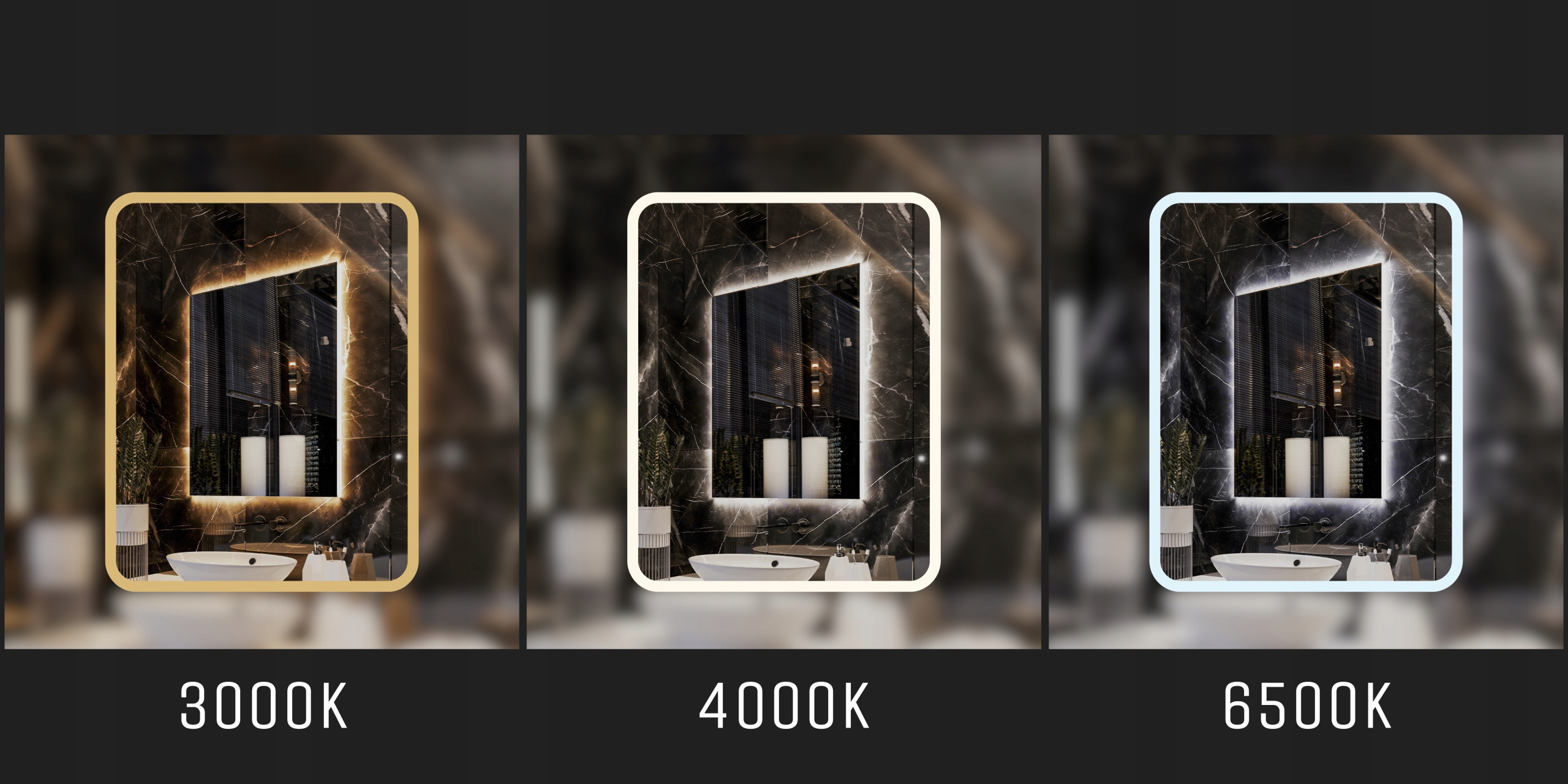 Če želite personalizirati ogledalo, nam po nakupu v sporočilu navedite želeno barvo LED-osvetlitve. Če teh podatkov ne prejmemo od vas, bomo privzeto izbrali nevtralno barvo svetlobe 4000K, ki se bo harmonično zlila z vsako notranjostjo.