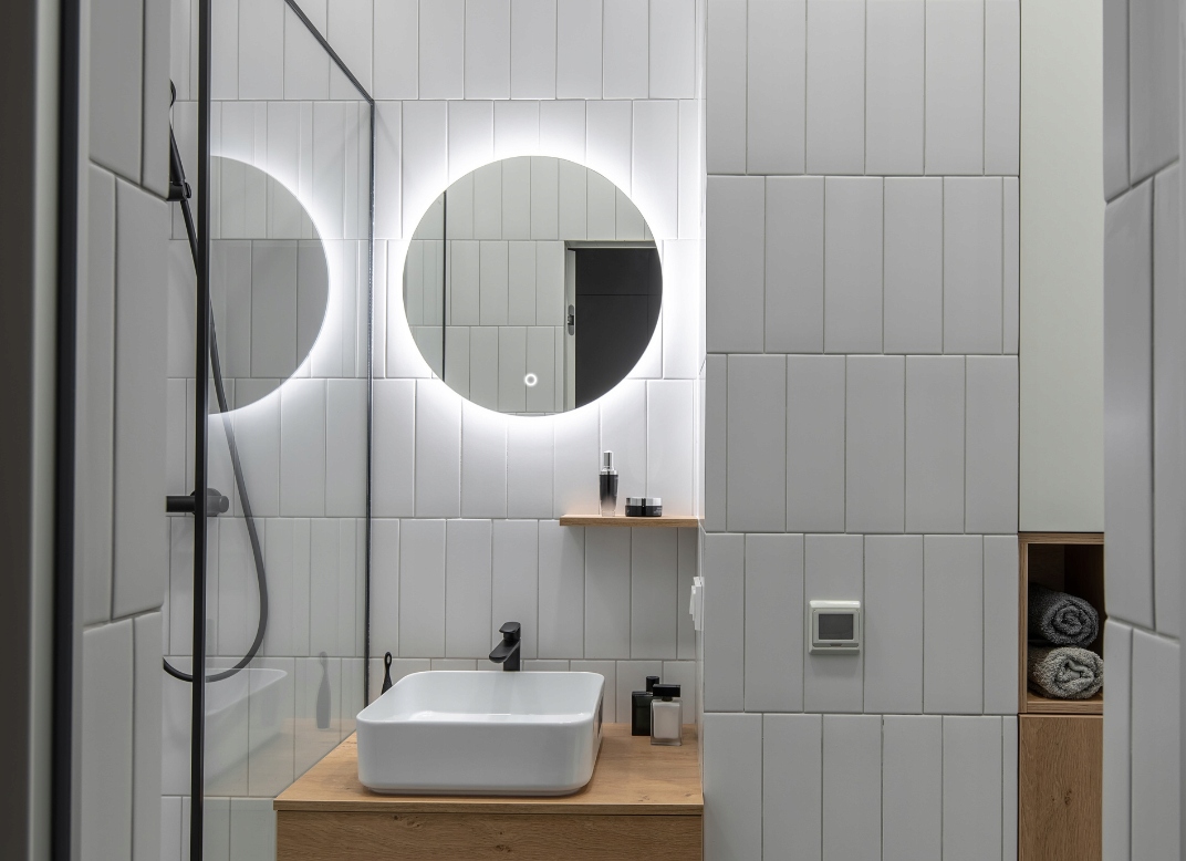 Odsev popolnosti: Okroglo ogledalo z LED osvetlitvijo, premer 75 cm