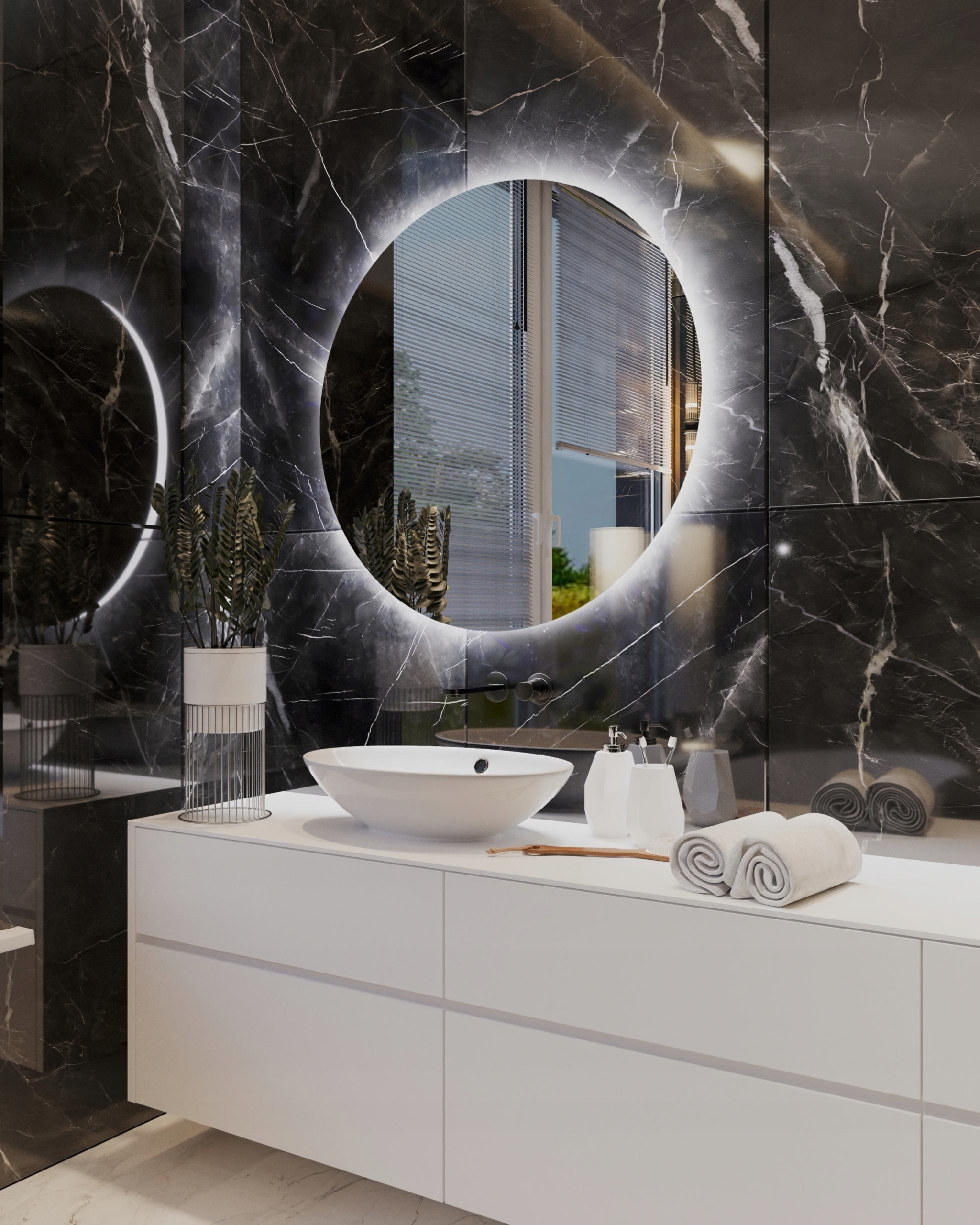 Odsev popolnosti: Okroglo ogledalo z LED osvetlitvijo