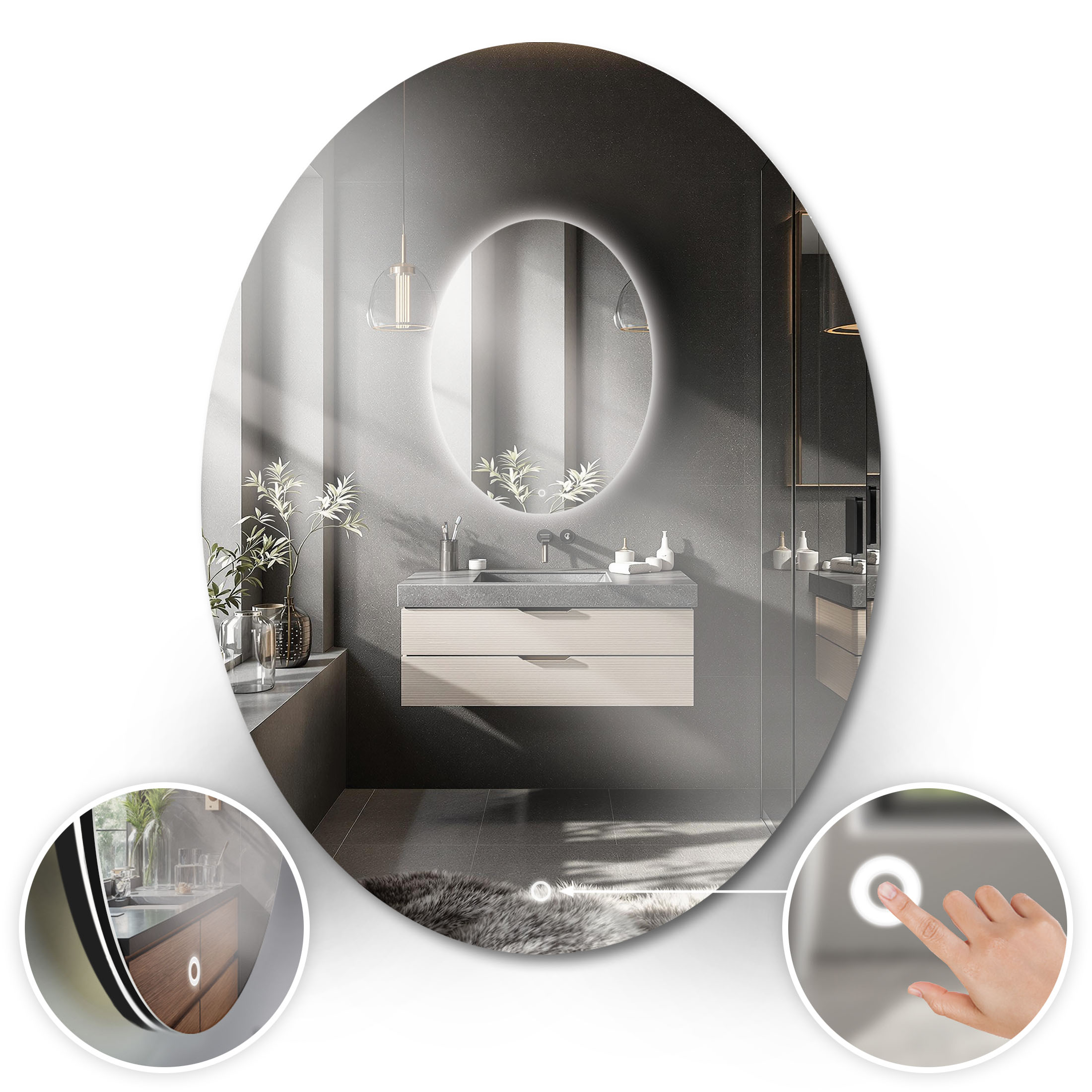 Eliptično ovalno LED ogledalo 100×80 z dotikalnim stikalom, vodoodporno IP65
