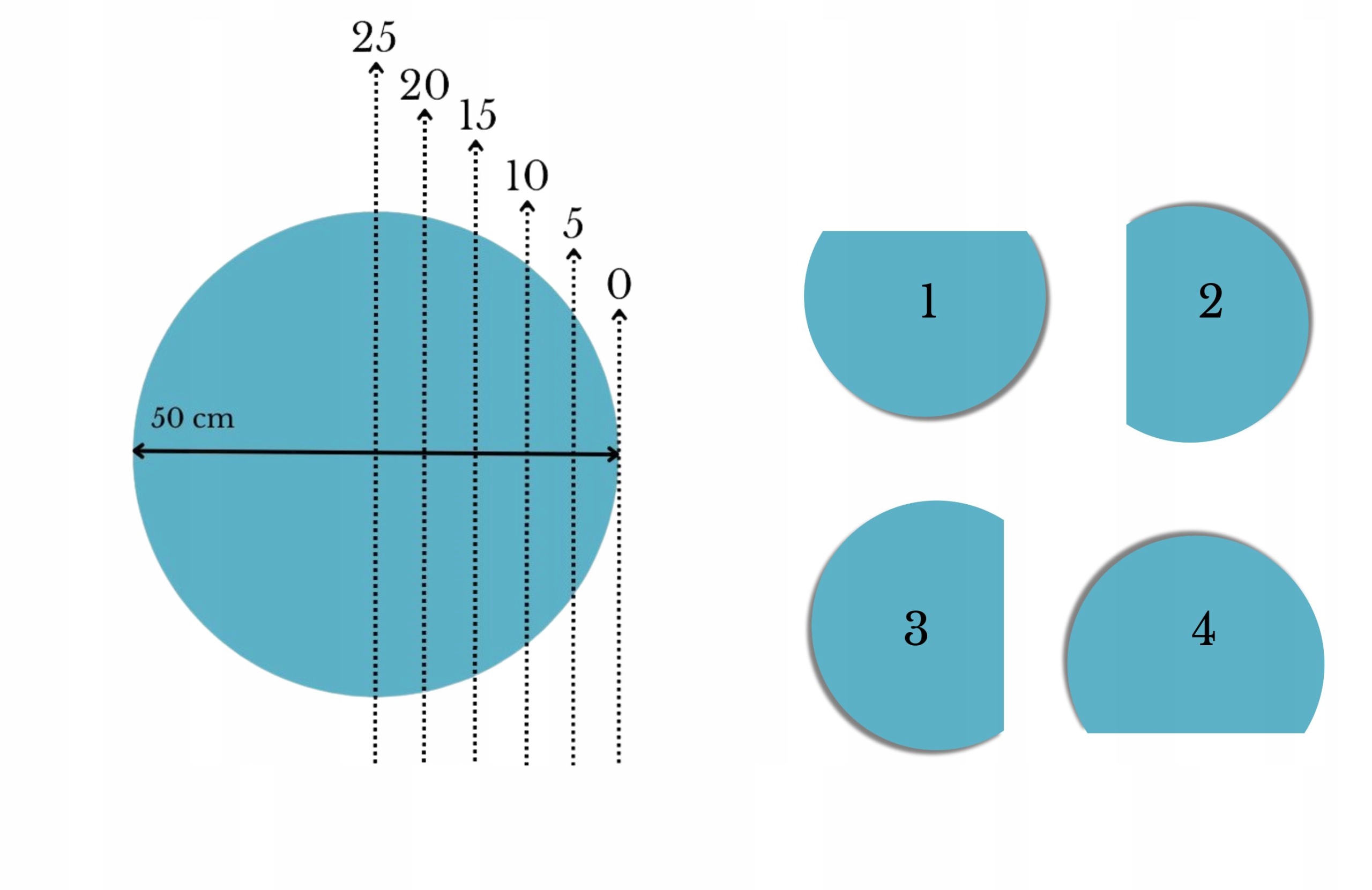 Premer ogledala, iz katerega izrežemo na želeno velikost, je 50 cm.