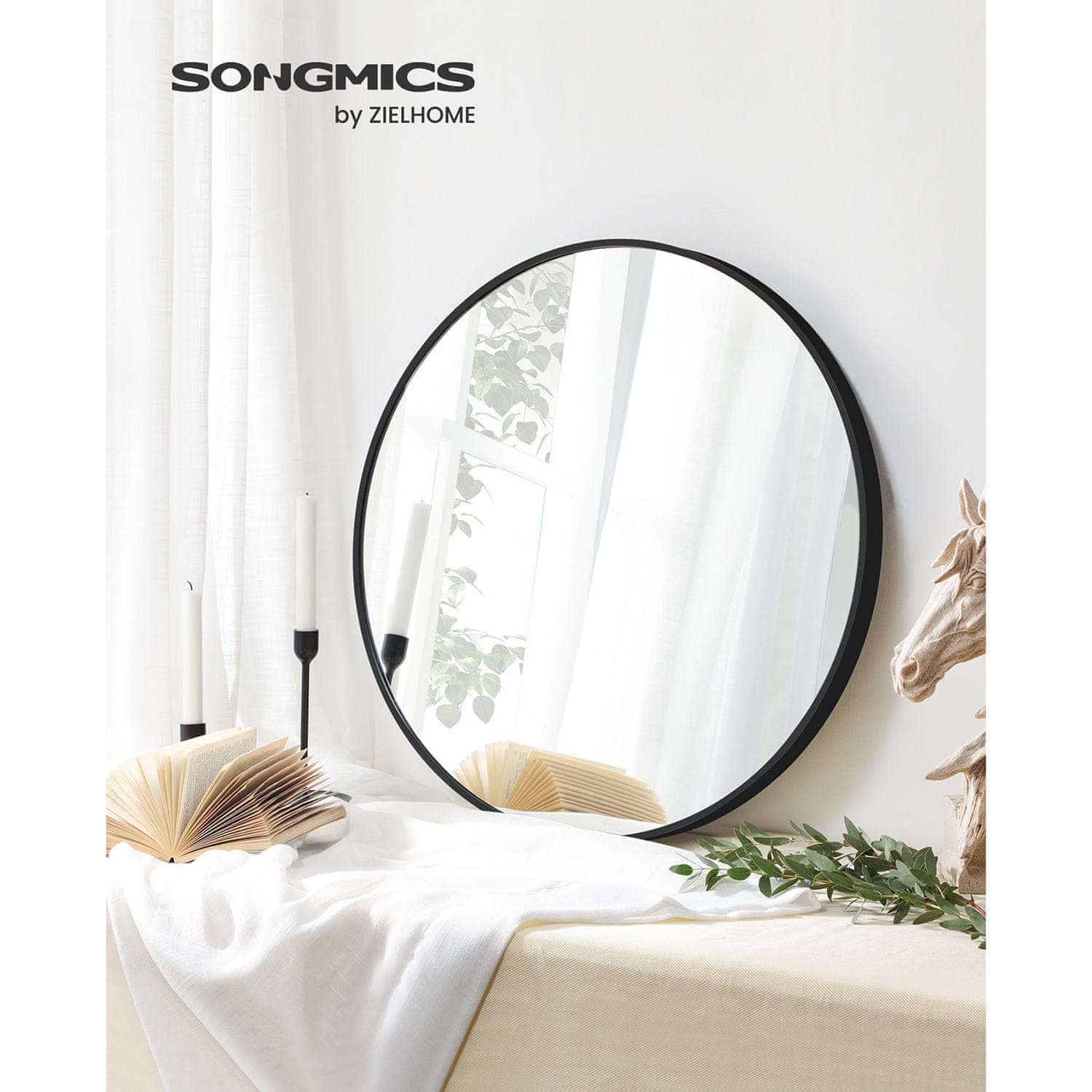 Songmics Stensko ogledalo okroglo 61 cm zlato