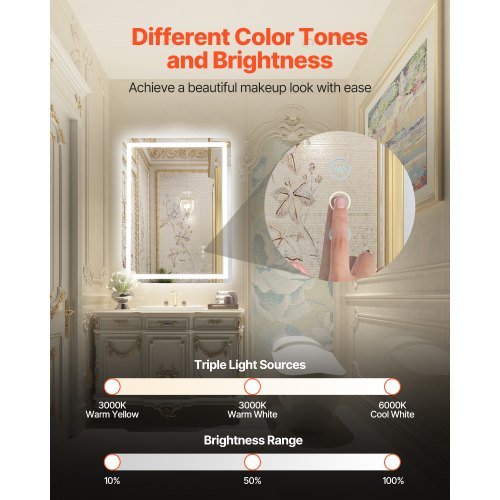 Ta LED-vannitoapeegel on loodud optimaalseks valgustuseks igapäevaste hooldustoimingute nagu meigi pealekandmine ja raseerimine jaoks. Varustatud nii esipoolse kui ka tagapoolse LED-valgustusega tagab see selge varjudeta valgustuse ja mugava vaatamiskogemuse. Peegel sisaldab täiustatud funktsioone nagu reguleeritav värvitemperatuur stepless hämardamine uduvastane tehnoloogia ja mälufunktsioon mis lisavad mugavust ja lihtsust kasutamisel.
