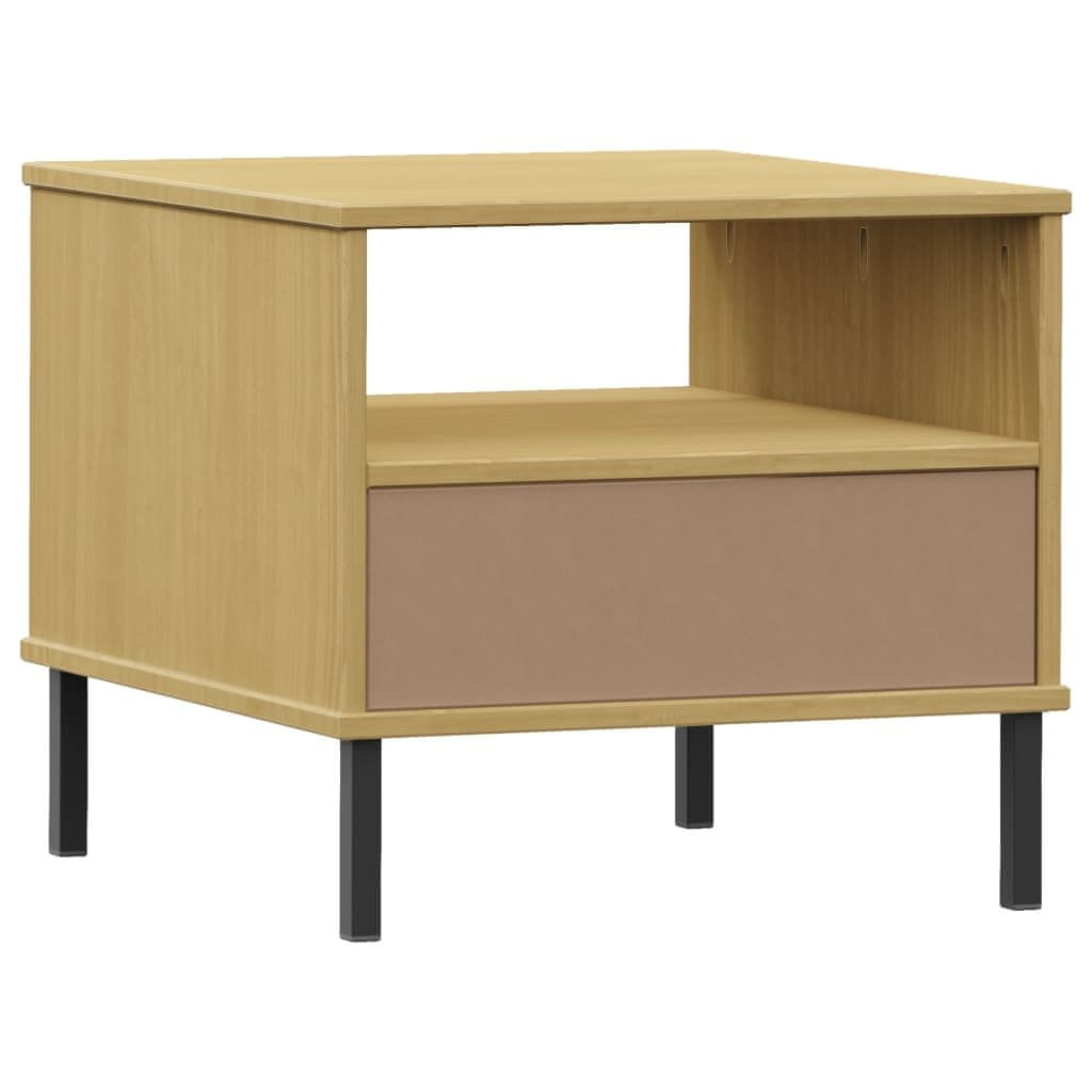 Vidaxl Nočna mizica s kovinskimi nogami rjava trdna borovina OSLO
