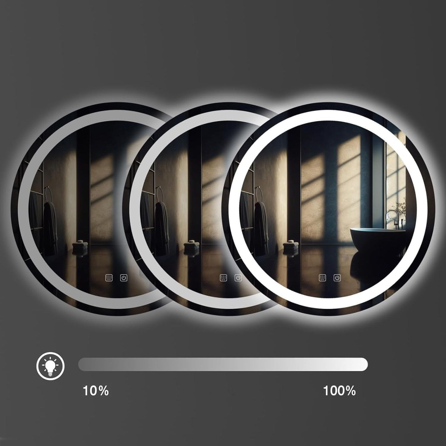 Okroglo ogledalo z led osvetlitvijo je idealna izbira za tiste, ki cenijo udobje uporabe in sodoben dizajn.Ogledalo je izdelano iz najkakovostnejših materialov, je videti popolno in zelo trpežno. Ima možnost izbire med tremi barvami svetlobe LED, občutljivimi na dotik – toplo, nevtralno in hladno – ter funkcijo ogrevanja, ki preprečuje zameglitev površine. Stikalo na dotik, ki se nahaja na plošči ogledala, je ob aktivni funkciji modro osvetljeno. Beli napajalni kabel dolžine 110 cm.Led okvir: približno 2,6 cmOddaljenost okvirja LED od roba: približno 2 cmPremer (mm): 585Dolžina (mm): Širina (mm): Globina: 20 mmDebelina okvirja: Barva: ChromeZaključek: Slog: SodobniOblika: okrogelModel: BASGarancija: 24 mesecevNapajanje: 12