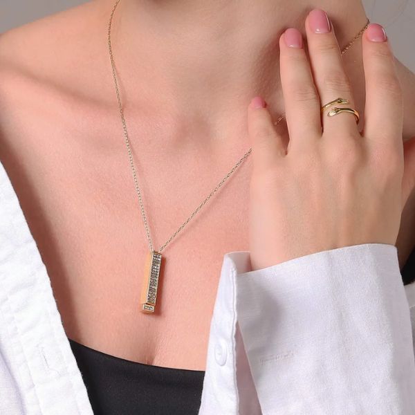Ta izvrstna ogrlica združuje eleganco s čustvi in ponuja eleganten, zaprt obesek s skrivnim sporočilom, ki je vidno le prejemniku.