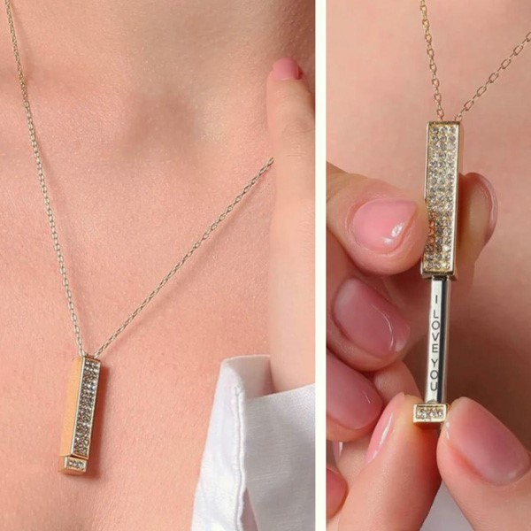 Ta ogrlica s pozlačenim obeskom s skritim sporočilom „Ljubim te“ v notranjosti predstavlja pomenljiv način, da svoje ljubljene opomnite, koliko vam pomenijo.