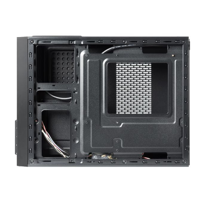 Popolnoma črno ohišje z dodatnim stojalom. Vgrajen tiho delujoč 250W napajalnik. Prostor za razširitvene kartice. Barva: črna. Dimenzije: 410mm x 105mm x 300mm. Teža: 3,5kg. Celoten opis