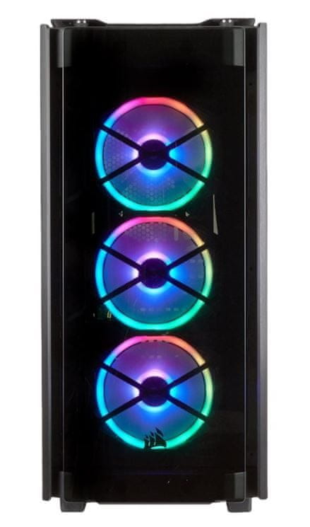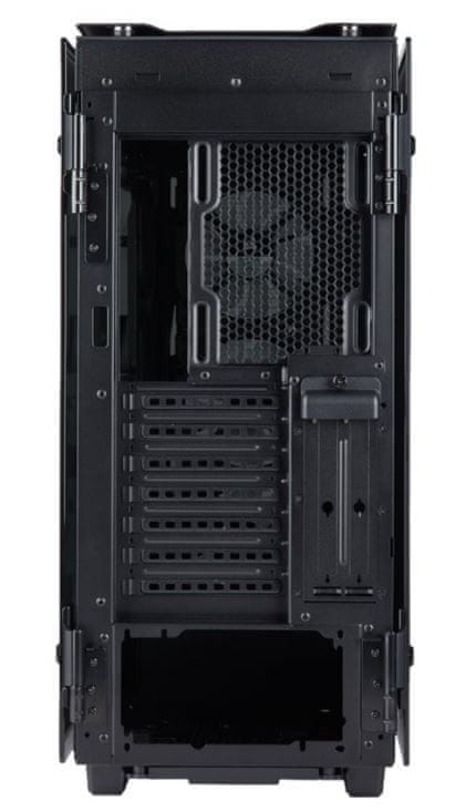 | Hladilni sistem (podpora za ventilatorje) | Spredaj: 3× 120 mm (vključeni) / 2 × 140 mm Zgoraj: 2× mesto za 120/140 mm Zadaj: 1× mesto za 120 mm |