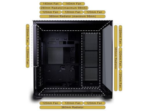 - Podpira matične plošče: E-ATX(do 280 mm širine), ATX, Micro-ATX, Mini-ITX