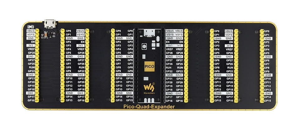 Štiri GPIO razširitveni modul za Raspberry Pi Pico, plošča s štirimi moškimi GPIO priključki, ki omogoča priključitev več razširitvenih modulov na vaš Raspberry Pi Pico.