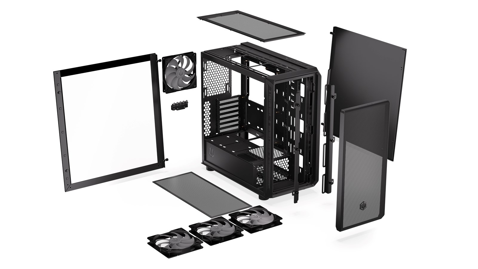 Prvo ohišje te vrste, zasnovano za shranjevanje najboljšega od vsega. Arx 700 ARGB uporablja najboljše rešitve. To je največje ohišje, kar jih je Endorfy izdal doslej (486×228×472 mm). To pomeni, da lahko sprejme vse vaše komponente – na primer visok hladilni sistem (do 179 mm), 8 ventilatorjev (vključno s 4 ventilatorji Stratus 140 PWM) in praktično katero koli razpoložljivo grafično kartico (do 410 mm). Prav tako jih ohranja prijetno prepišne, saj mrežaste plošče (spredaj in zgoraj) omogočajo svež pretok zraka in blokirajo morebitne umazanije. Vse je mogoče nadzorovati skozi okno iz kaljenega stekla.