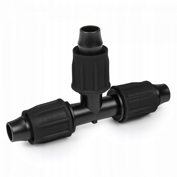 • Bradas DSWAQJ-T16 vijačni T-kos je zasnovan za kapljične cevi in priključne cevi s premerom 16 mm. Njegova vijačna konstrukcija poenostavlja namestitev, enakomerno razvejanje pa omogoča prilagodljivo razporeditev namakalnega sistema.