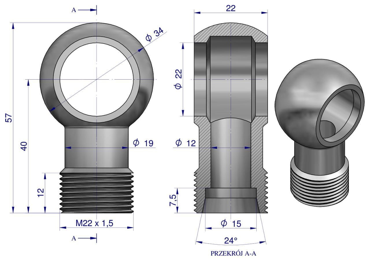 Konektor z očescem Fi22–15L (M22X1.5) Waryński (naprodaj v kompletih po 2) Celoten opis