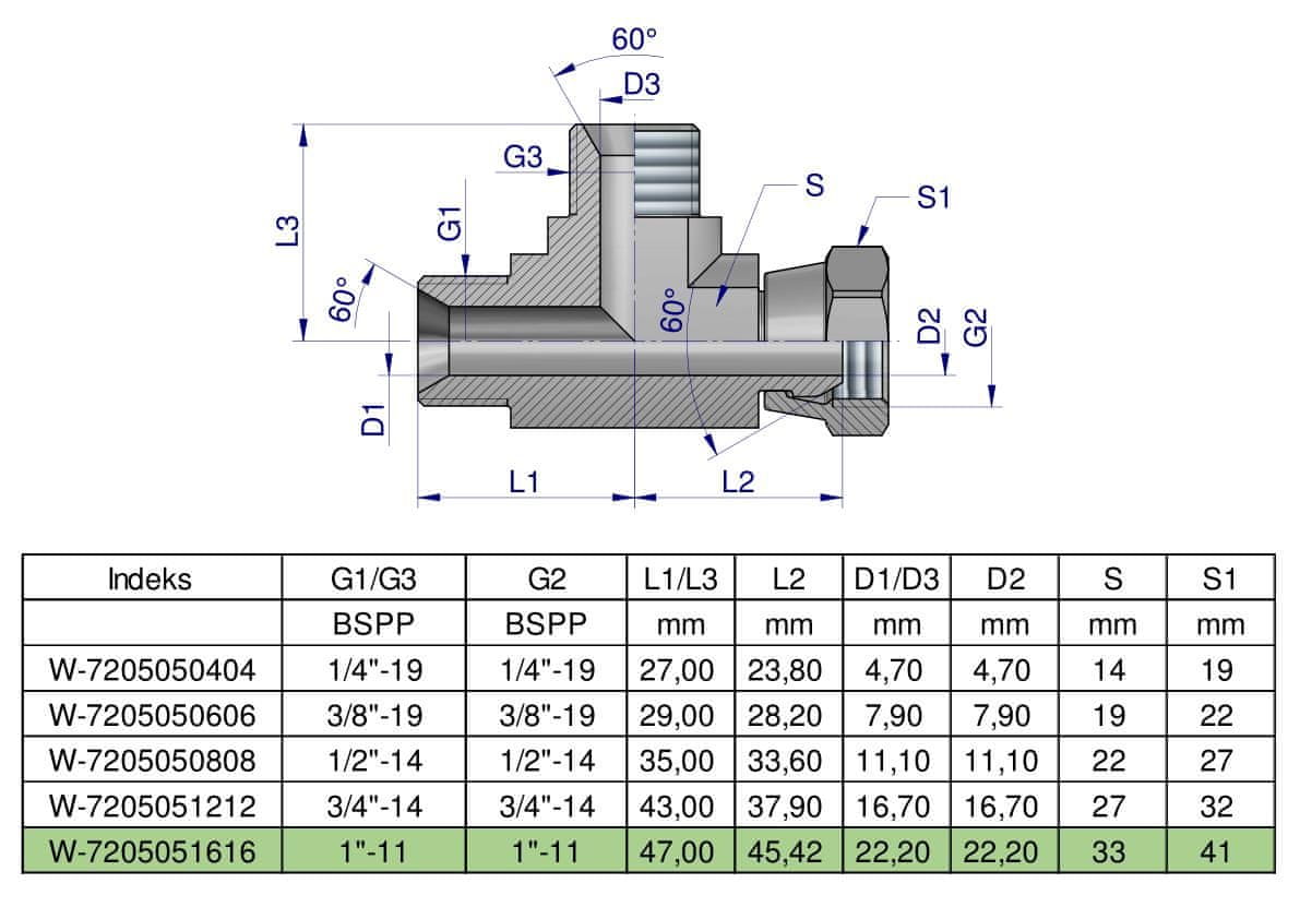 BBA 1" BSP (XEVL) Waryński inčni asimetrični hidravlični T-kratnik. Konektorji so zasnovani in izdelani v skladu z veljavnimi standardi, ki podrobno določajo zahteve glede kakovosti in dimenzij. Združljivi so s konektorji drugih priznanih proizvajalcev močnostne hidravlike.