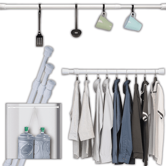 Deluje kot: palica za zavese, obešalnik, organizator, držalo za tuš, podpora za omaro.