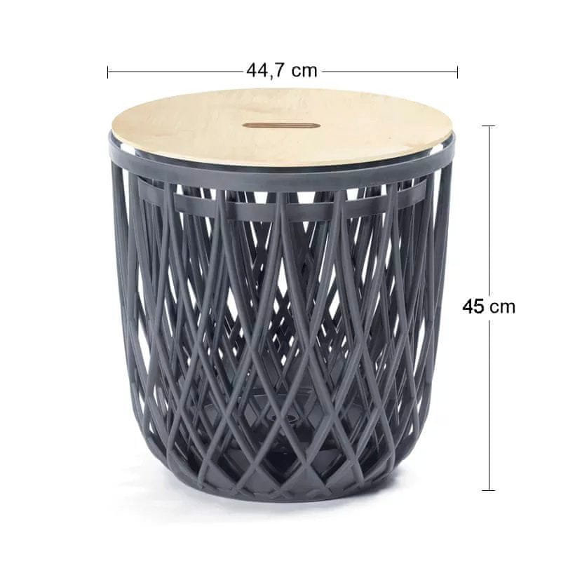 Plastični univerzalni koš (3 kom) IKUBS3 35/55 l ne sme manjkati v nobenem moderno ali klasično opremljenem gospodinjstvu. Ta komplet treh plastičnih košar ima nešteto uporab, odlikujeta ga eleganten dizajn in trpežnost. Košare lahko uporabljate kot stabilen in udoben sedež, mizico za odlaganje drobnarij ali kot držalo za dežnik, razne dodatke, igrače, revije ali kot okrasno posodo za rože. Izdelane so iz lahkega, a zelo trpežnega materiala, enostavne za čiščenje in so odporne na vremenske vplive. Različica v antracitni barvi se prilega vsakemu notranjemu dizajnu. Set sestavljata dve manjši košari dimenzij (premer x višina): 39×40 cm in prostornina 35 litrov ter ena večja z lesenim pokrovom dimenzij (premer x višina): 44,7×45 cm in prostornina 55 litrov. Elegantna oblika in dovršen dizajn košar tvorita harmonično celoto, ki lepo zaokroži celoten videz doma.