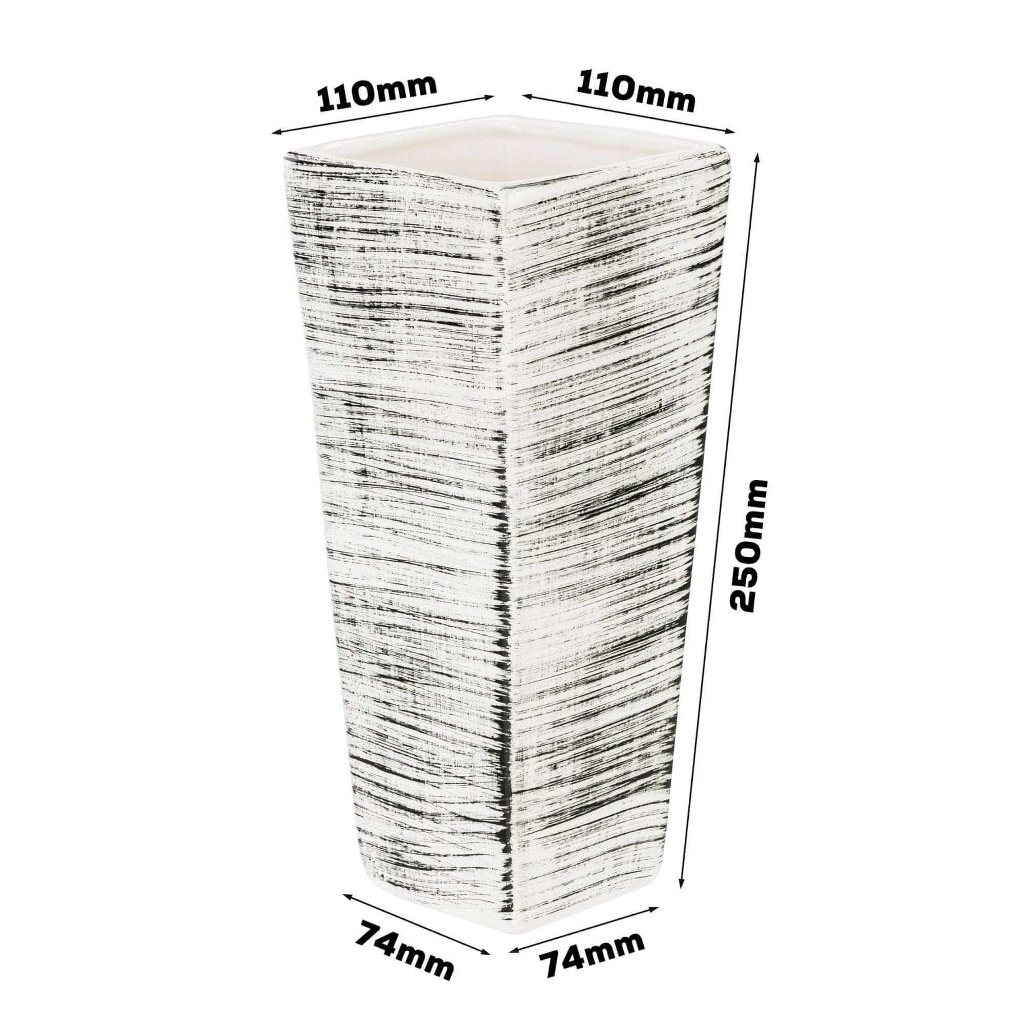 Keramična cvetlična vaza bela črna sijaj V 25 cm Dekorativna namizna vaza kvadratna cvetlična dekoracija orhideja moderen glamur