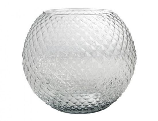 Steklena, okrašena, ročno izdelana vaza. Okras je podoben poplavi majhnih diamantov. Oblikovana kot krogla. Primerna za rože in aranžmaje ter kot dekoracija za dom. Dimenzije: premer 12 cm, višina 10 cm.