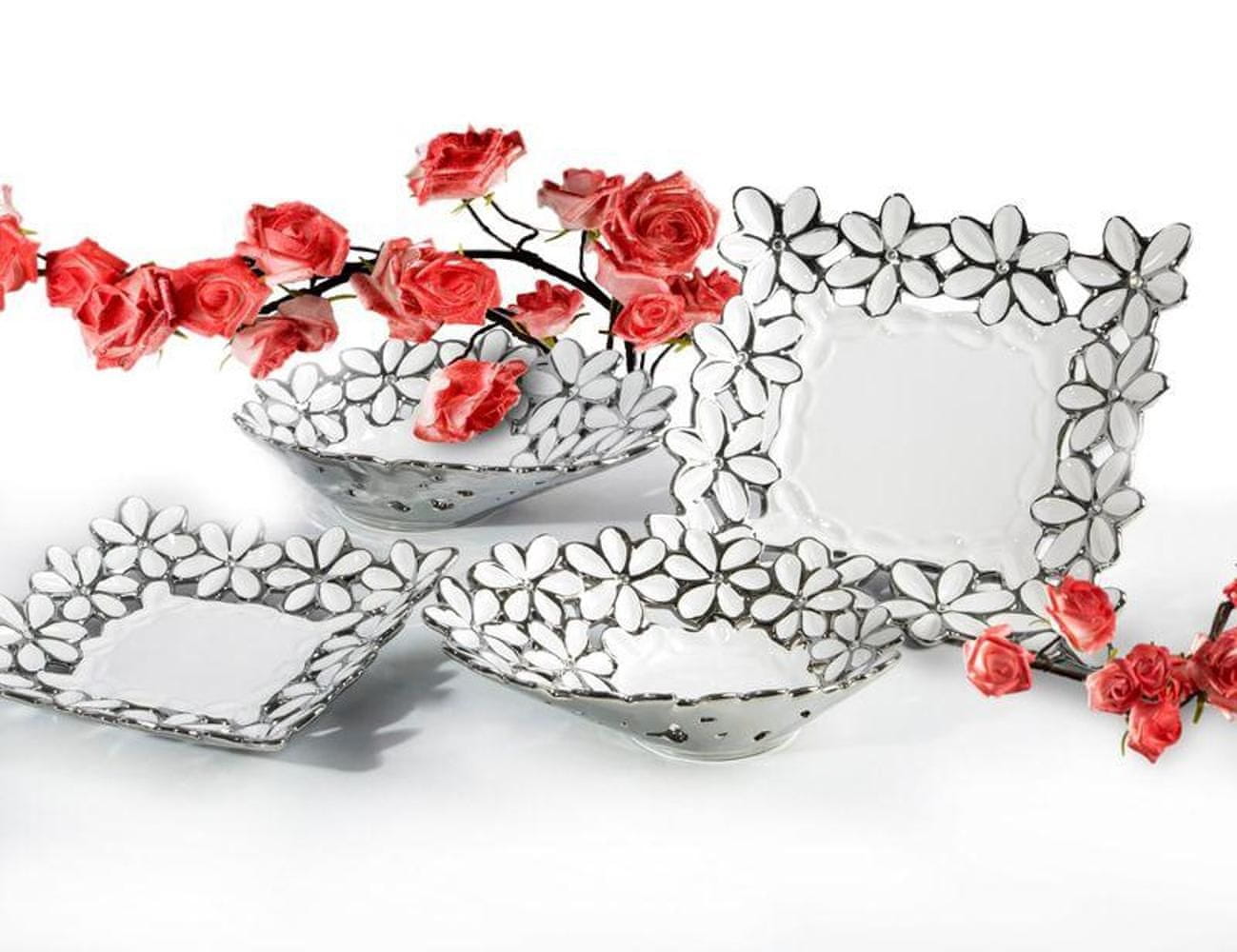 Dekorativna vaza s cirkoni širina: 14 cm, dolžina: 14 cm, barva: bela/srebrna, sestava: keramična glina Celoten opis