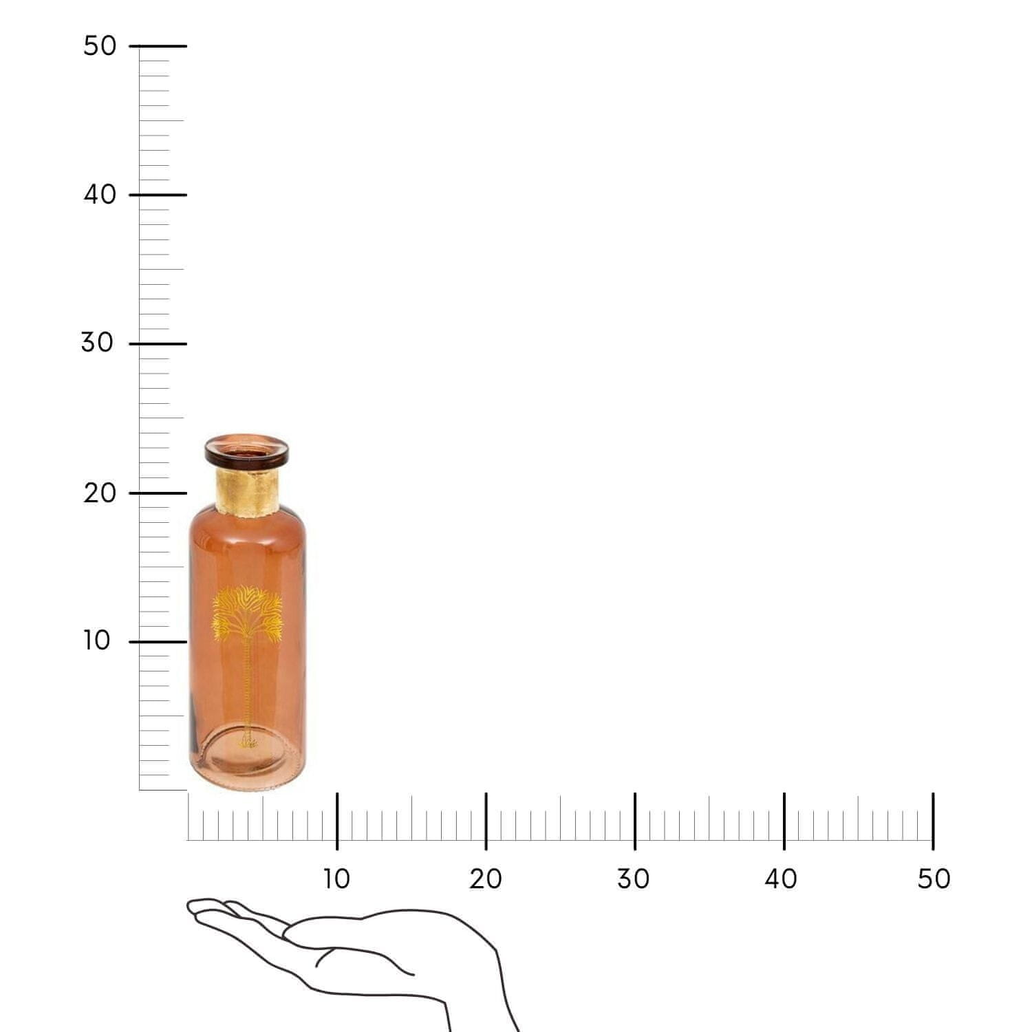 22 cm visoka vaza Tropical Boudoir je eleganten okras, kibo vsaki notranjosti dodal eksotičen čar.    Iz jantarnega steklaodlikuje ga sodobna, stekleničkasta oblikain osupljivi zlati detajli, ki mu dajejo luksuzen pridih.Popoln tako za vsakodnevne cvetlične aranžmajein kot samostojen dekorativni element.
