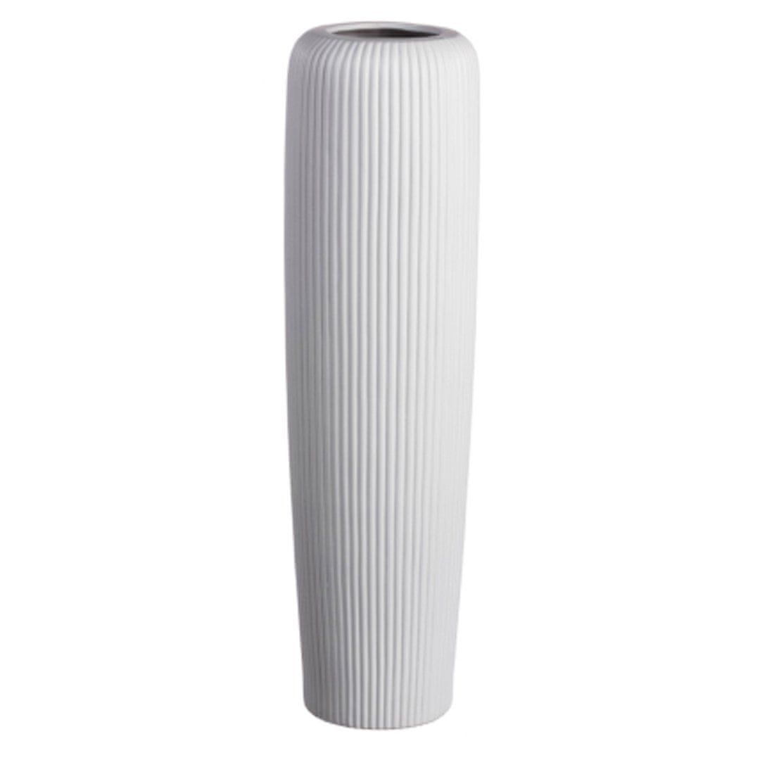 Vaza Blanque višine 56 cm je izdelana iz bele keramike z reliefnim črtastim vzorcem, ki se bo lepo podala v vsak dom in popestrila svež ali suh cvetlični aranžma. Celoten opis