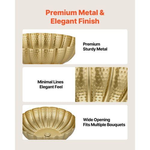 Ta mini cvetlični lonec ima kompakten, zlato pobarvan dizajn, popoln za elegantne osrednje okraske na porokah, zabavah ali domači dekoraciji. Njegova trdna konstrukcija in enostavna postavitev ga naredijo idealnega za razstavljanje majhnih cvetličnih aranžmajev. Dimenzije: 18,5×12 cm. Celoten opis