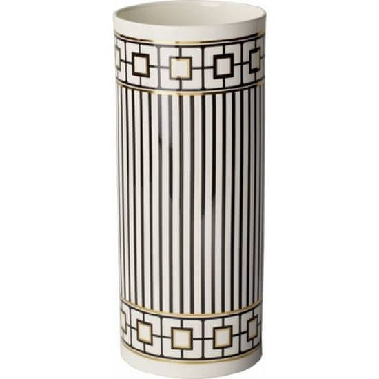 Visoka vaza iz kolekcije MetroChic z geometrijskim dekorjem v črni in zlati barvi v stilu Art Deco, višina 30,5 cm. Ročno pozlačen z 20 karatnim zlatom. Celoten opis