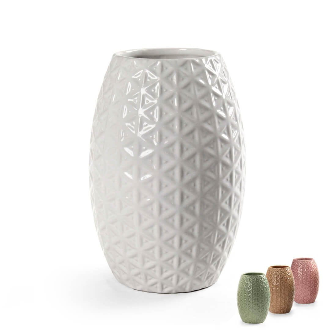 Keramična vaza z reliefnimi geometrijskimi vzorci je popoln poudarek za vsak prostor. Njena prefinjena tekstura ustvarja igro svetlobe in senc, ki vazo spremeni v pravi dekorativni kos. Primerna je tako za suho kot sveže cvetje. Na voljo je v več barvah, zato jo zlahka uskladite s svojim stilom in ambientom doma.