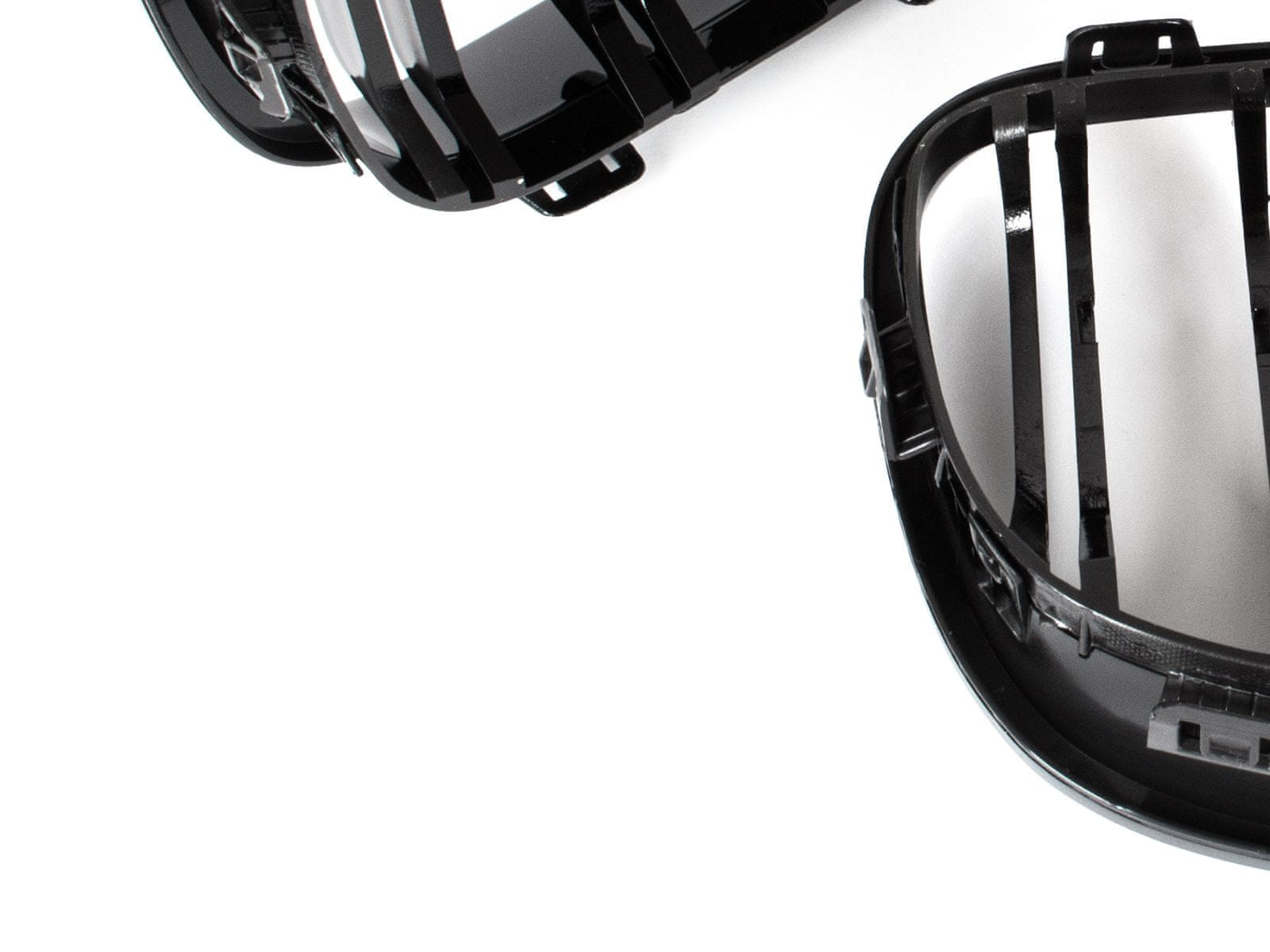 BMW 1 F20 / F21 11–14 3/5D HATCHBACK rešetke med žarometi (ledvičke) levo + desno komplet ČRNO SIJAJNA DVOJNA PREČKA Celoten opis