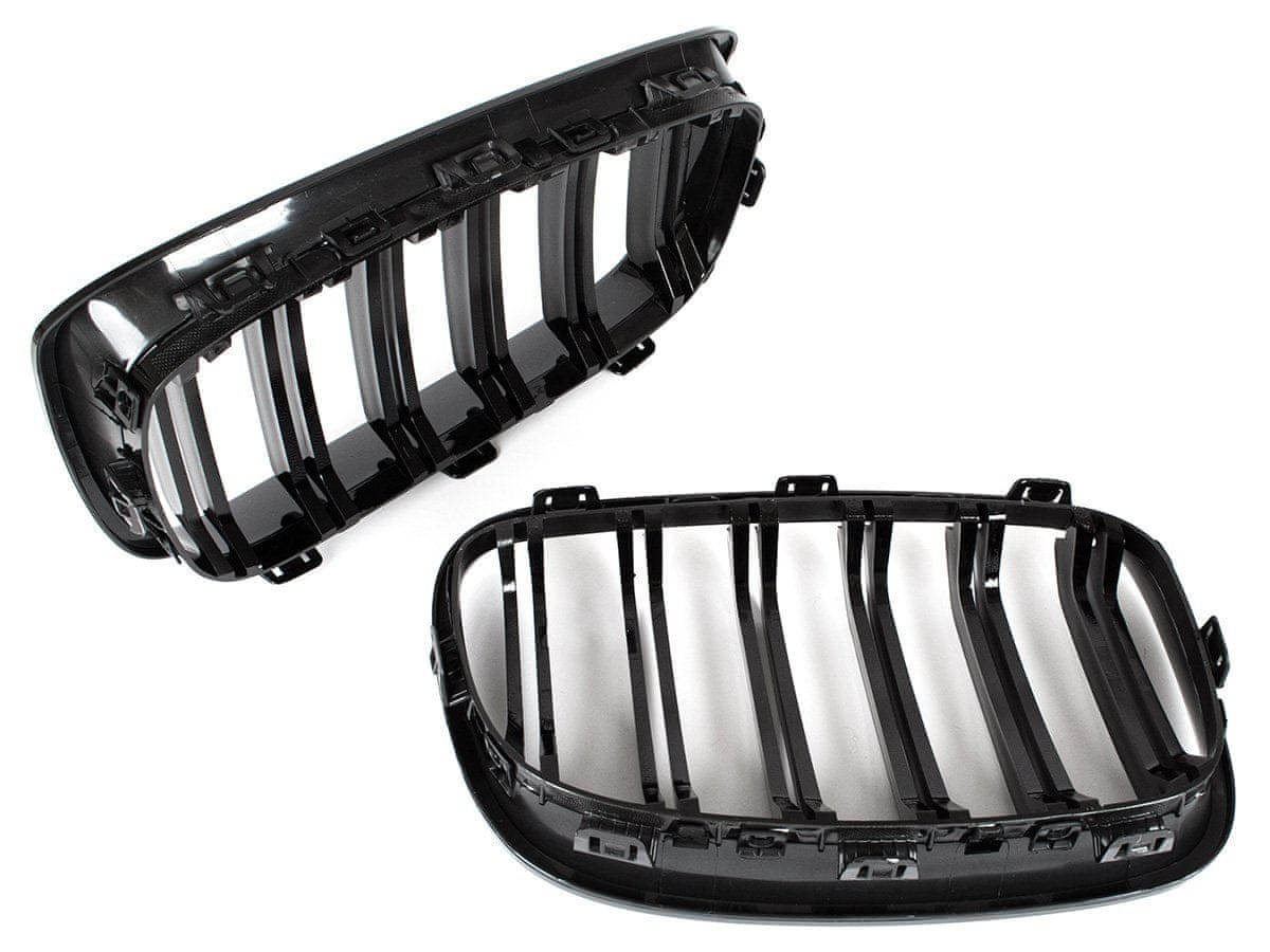 shumee BMW 1 F20 / F21 11-14 3/5D HATCHBACK rešetke med žarometi (ledvičke) levo + desno komplet ČRNO SIJAJNA DVOJNA PREČKA