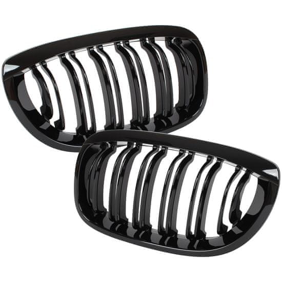 shumee BMW 3 E46 01-05 COUPE / CABRIO rešetke med žarometoma (ledvička) levo + desno komplet ČRNO SIJAJNA DVOJNA PREČKA