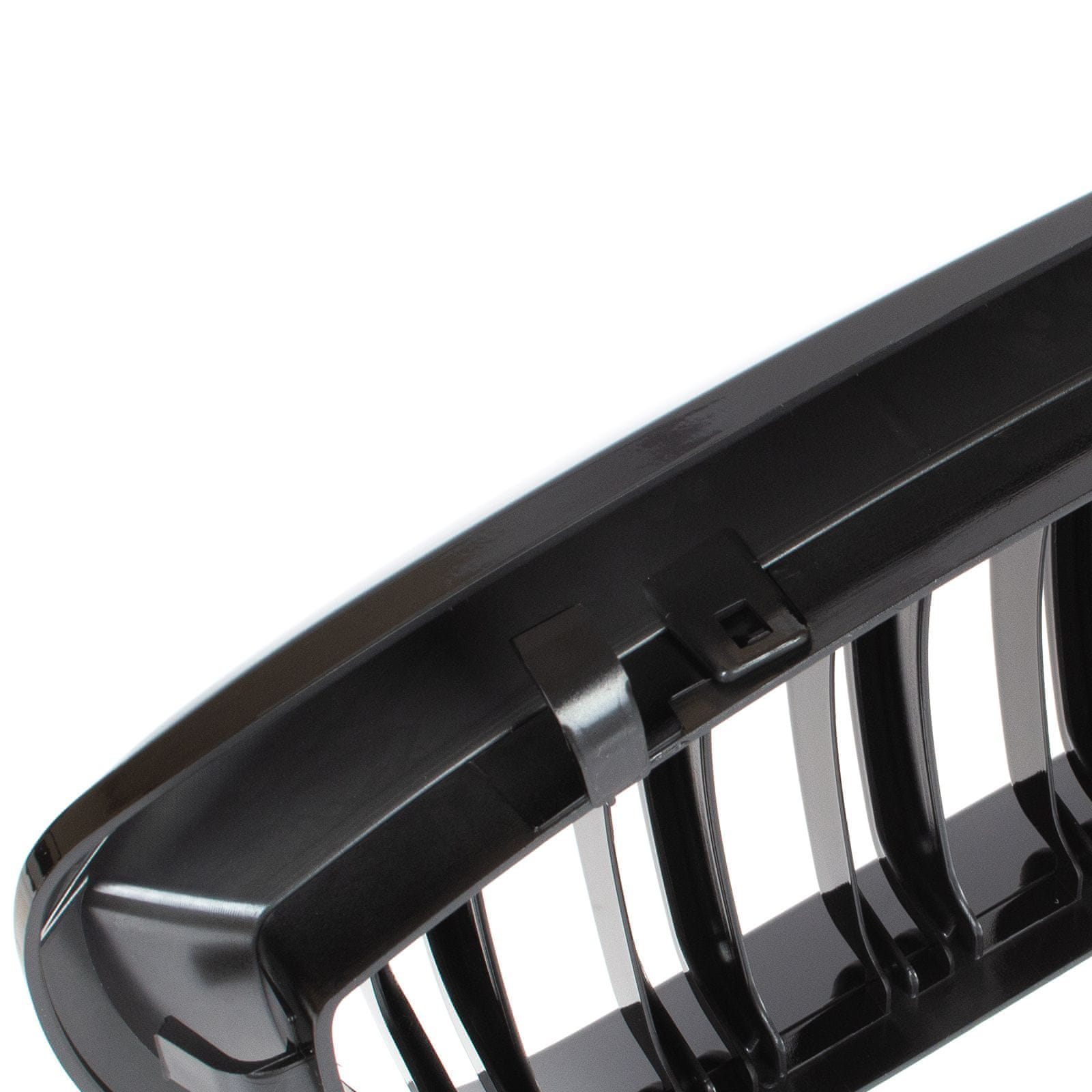 BMW 3 E46 01–05 COUPE / CABRIO rešetke med žarometoma (ledvička) levo + desno komplet ČRNO SIJAJNA DVOJNA PREČKA Celoten opis