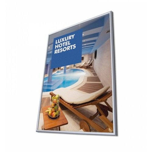 Sprednja PVC UV zaščitna folija. Primeren je za pogosto menjavo reklamnih plakatov in sporočil. Enostavna in hitra menjava plakata s pomočjo klip-klap sistema, brez jemanja okvirja s stene in brez uporabe orodja. Na steno ga lahko pritrdite s pomočjo lepljenja z dvostranskim lepilnim trakom ali vijačenjem.