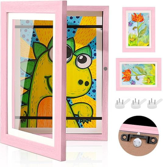 Ta okvir za slike A4 z dimenzijami 32 × 24 cm je izdelan iz visokokakovostnega lesa in zaključen v elegantni roza barvi. Okvir je zasnovan za razstavljanje otroških risb, fotografij ali drugih spominkov, ki so v formatu A4. Zaradi svoje trdne konstrukcije in stilskega videza je primeren za uporabo v otroških sobah, dnevnih sobah ali pisarnah, kjer želite dodati osebno noto. Okvir omogoča enostavno menjavo vsebine, kar je idealno za starše, ki želijo redno razstavljati nova umetniška dela svojih otrok.
