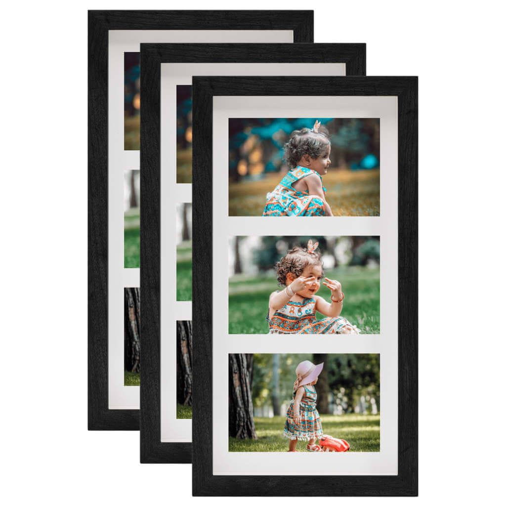 Vidaxl 3D foto okvirji 3 kosi črni 18x35 cm za 3x(10x15 cm) slike