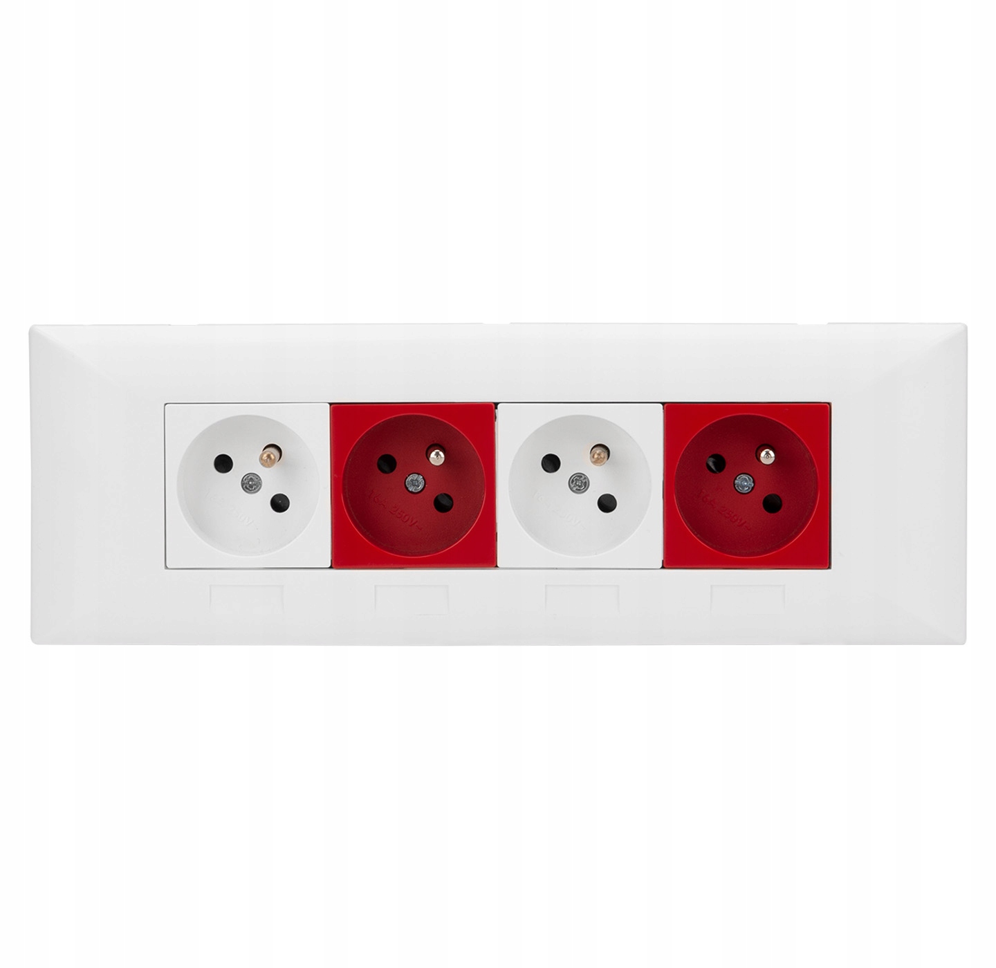 Štirikratni okvir za montažo vtičnic 45×45 mm v kabelski kanal.