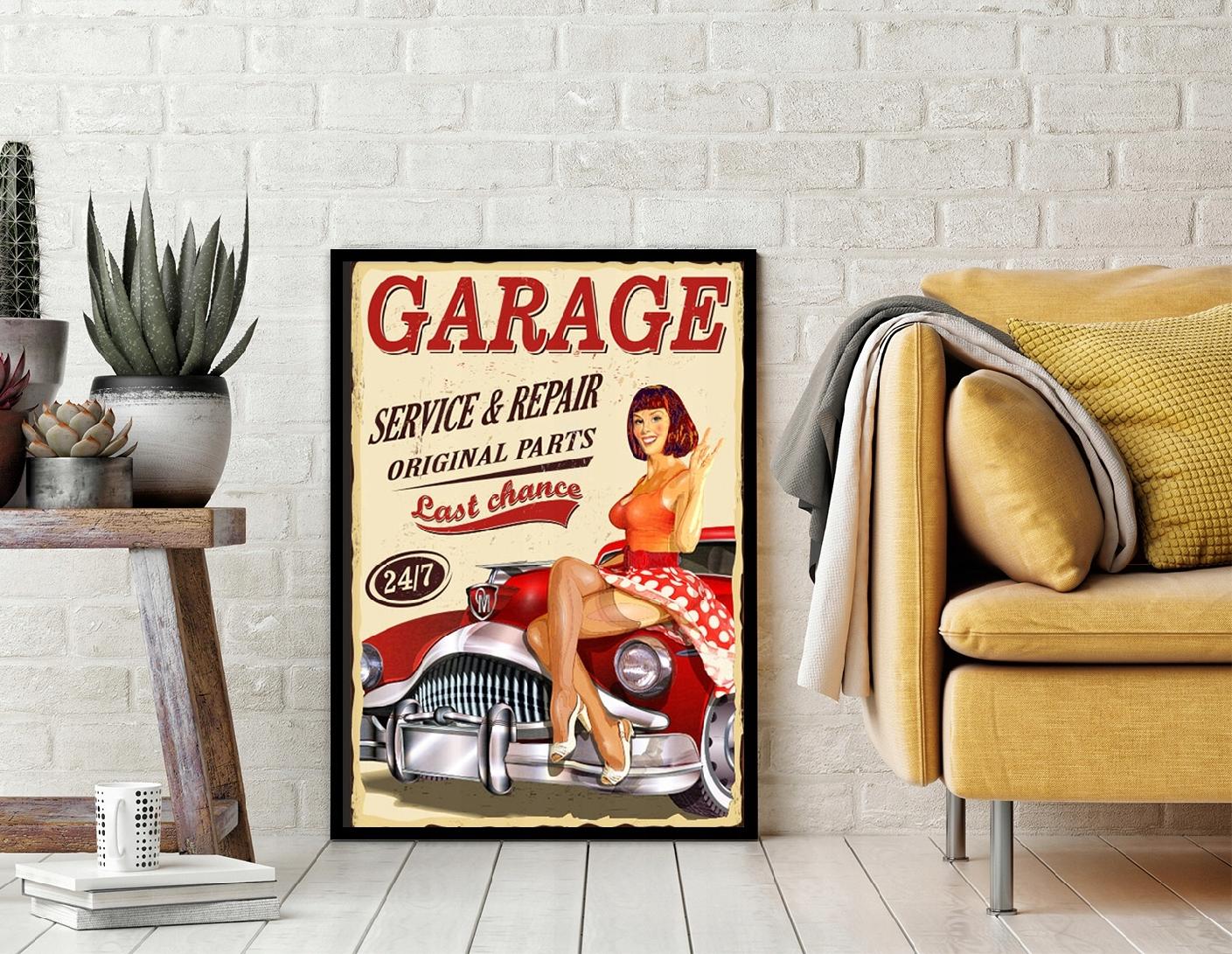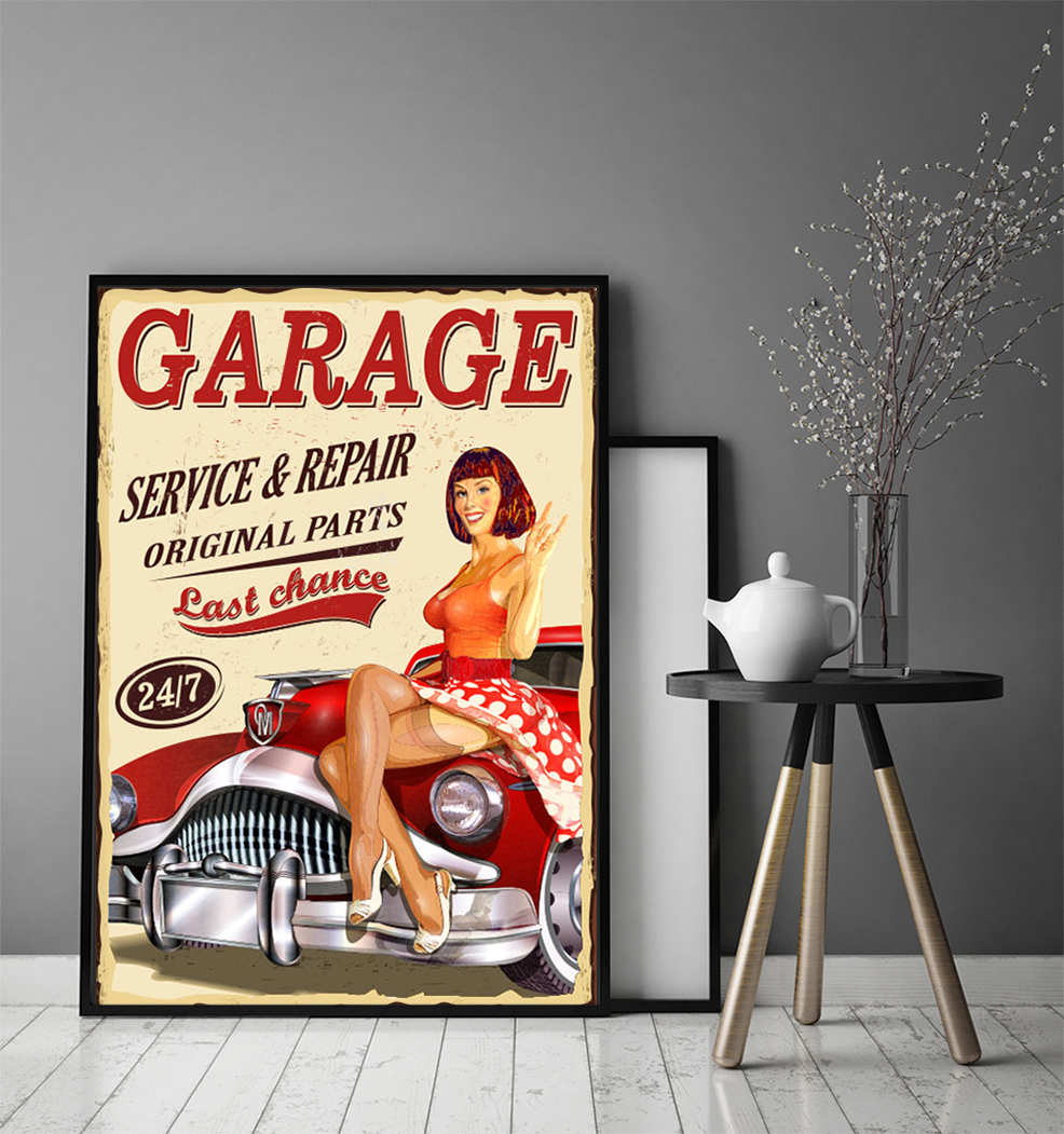 shumee PLAKAT ZA SLIKE V OKVIRJU 53x73 cm Garage Pin-up P1845